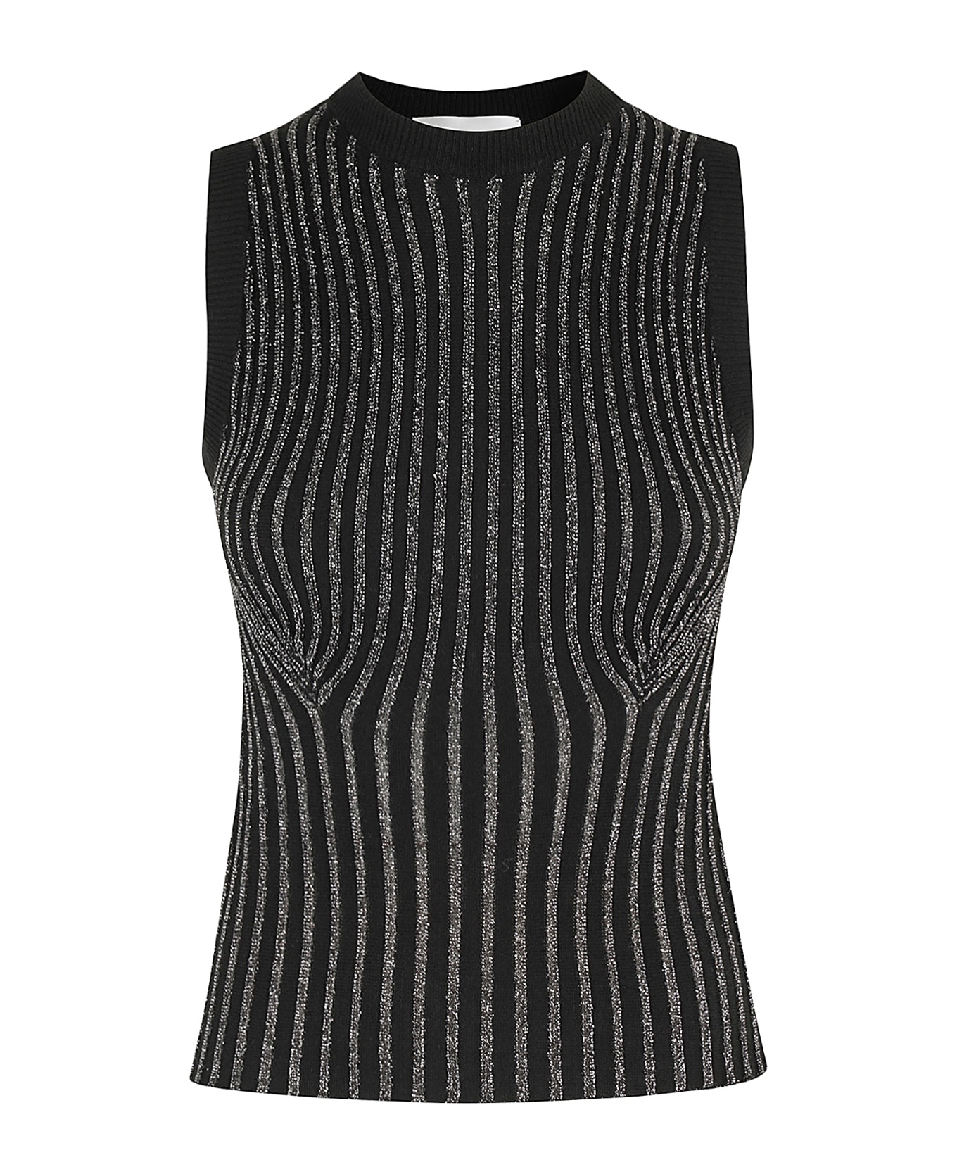 Top - Des Phemmes - Black color - Contrasting lurex stripe pattern - Stretchy wool blend fabric - Crewneck - Sleeveless - Fitted fit