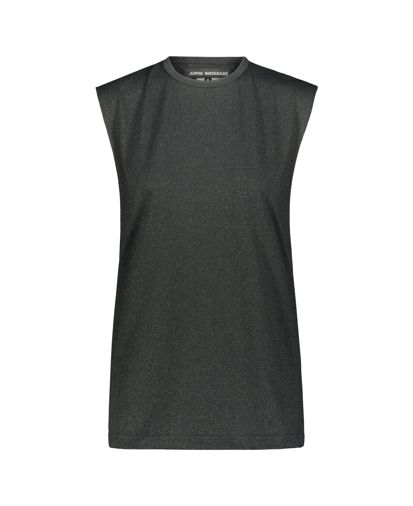 Junya Watanabe Sleveless black t-shirt in lurex , raw cut armholes.
