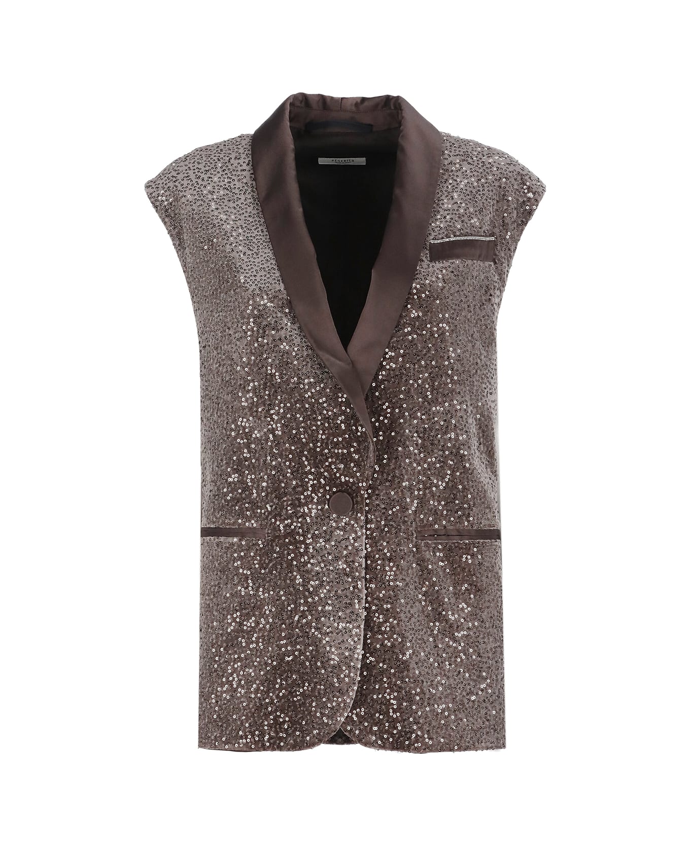 - Bronze Peserico Aurea silk blend vest for woman - V-neck - Sleeveless - All-over sequins - Breast pocket - Two front welt pockets - Front button fastening