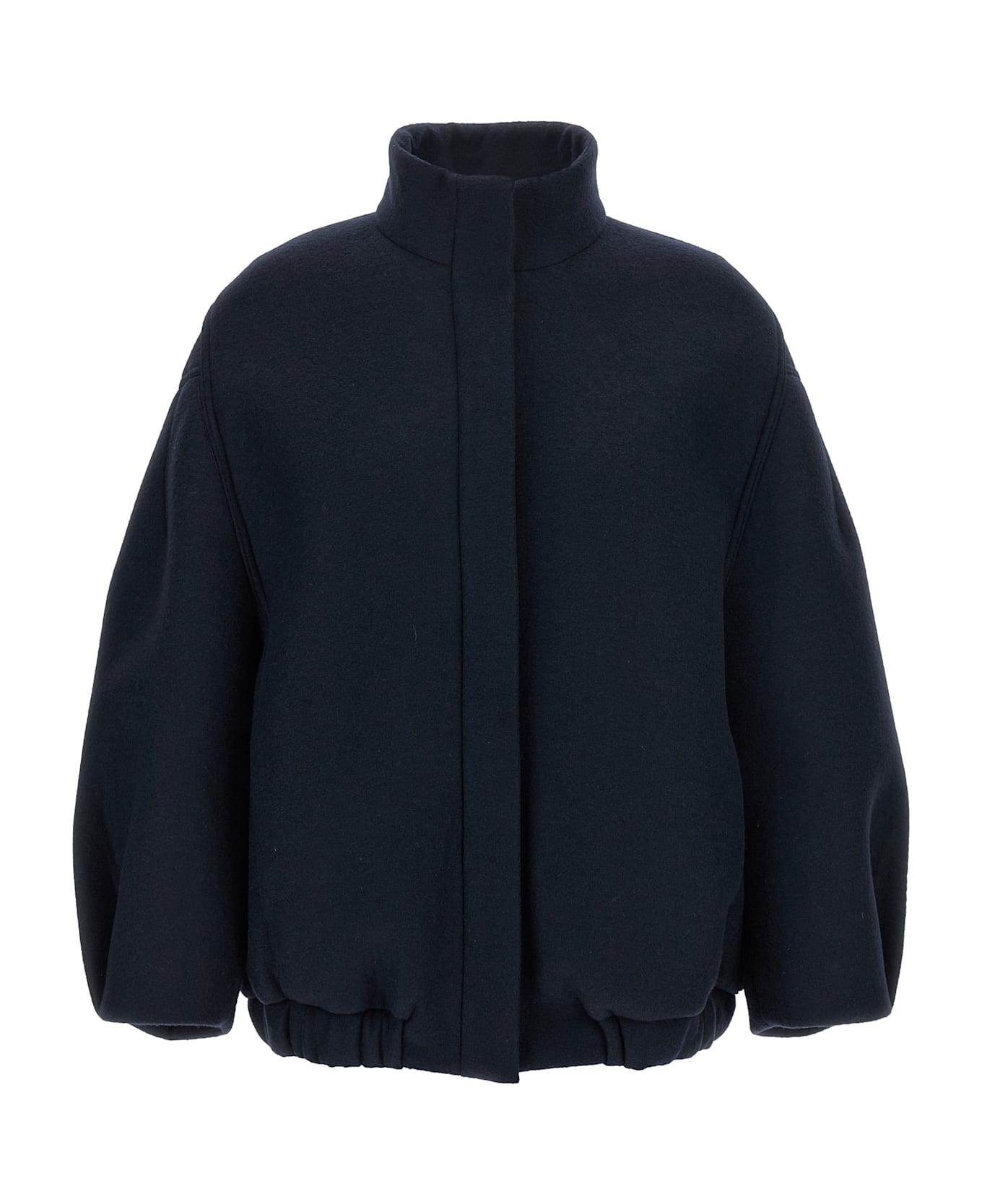 'Voles' airtex bonded wool blend bomber jacket, viscose and cotton blend lining, high neck, front hidden zip closure, pockets, long puff sleeves, elastic hem.