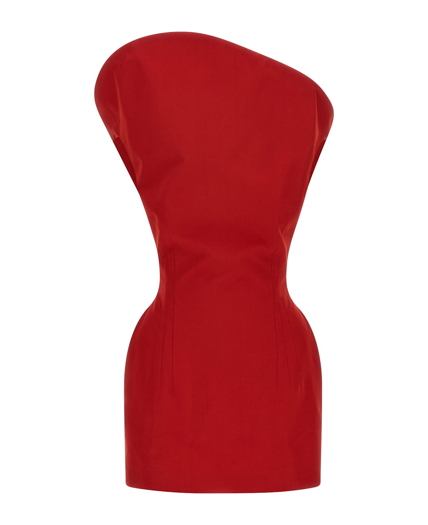 '32' cotton mini dress with hourglass silhouette with padded sides, off-the-shoulder style with 3D structure, back zip closure, silk lining. Composition: 56% cotton 46% viscose