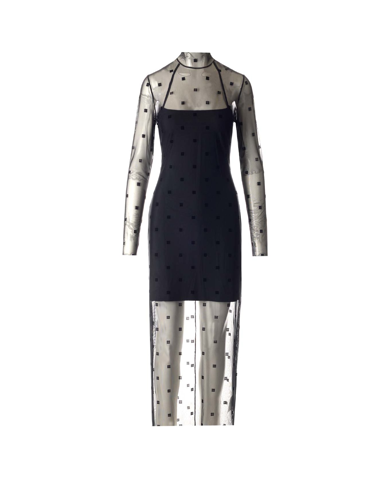 Long-sleeved dress from Givenchy in 4G plumetis tulle, with high neck, back zip closure, short petticoat, comfortable fitted cut. Composition: Main Material : 82 % POLYAMIDE 18 % ELASTANE