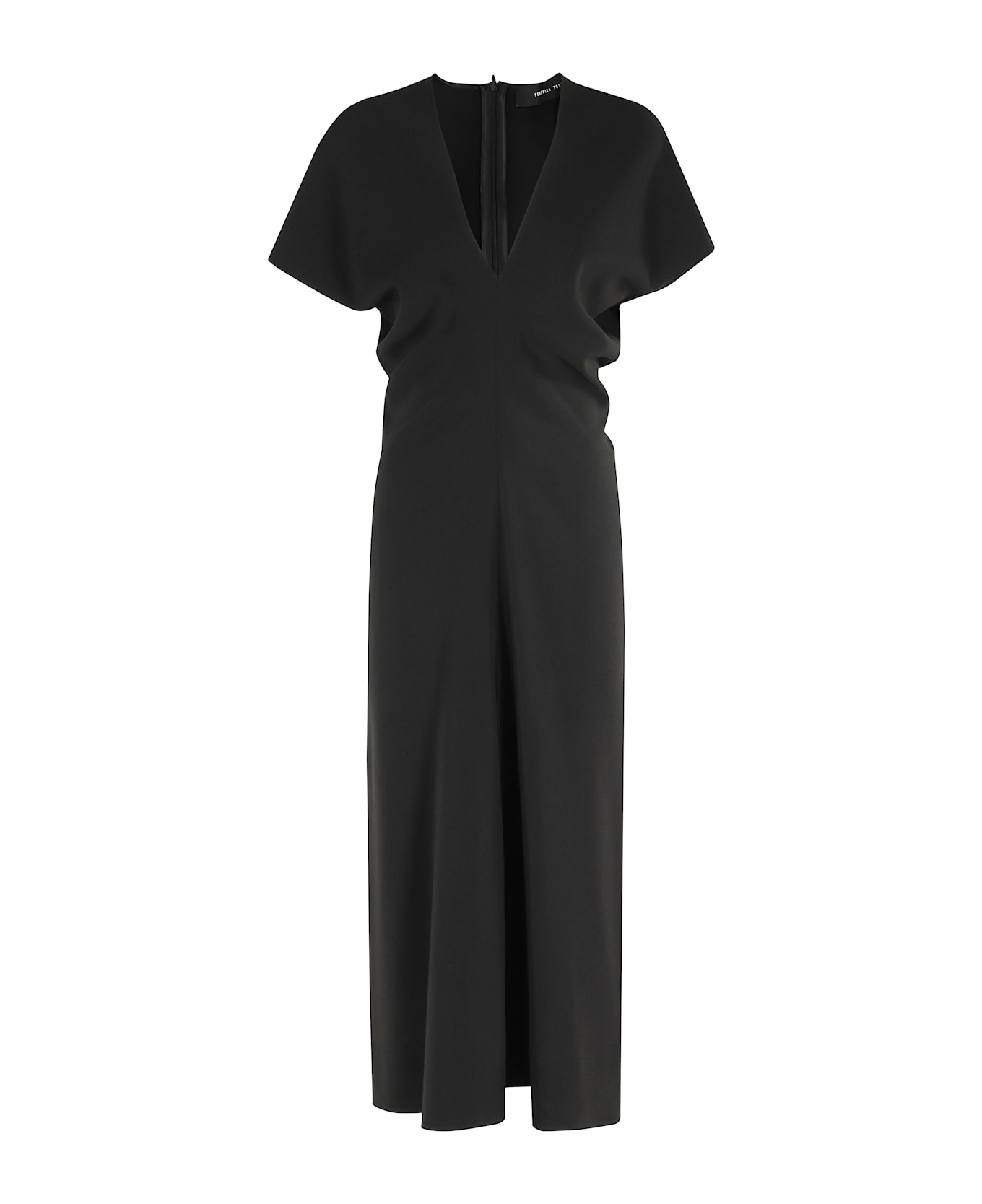 Long dress -Federica Tosi -Black color -Short sleeve -V-neck -Zip back closure -Curled waist