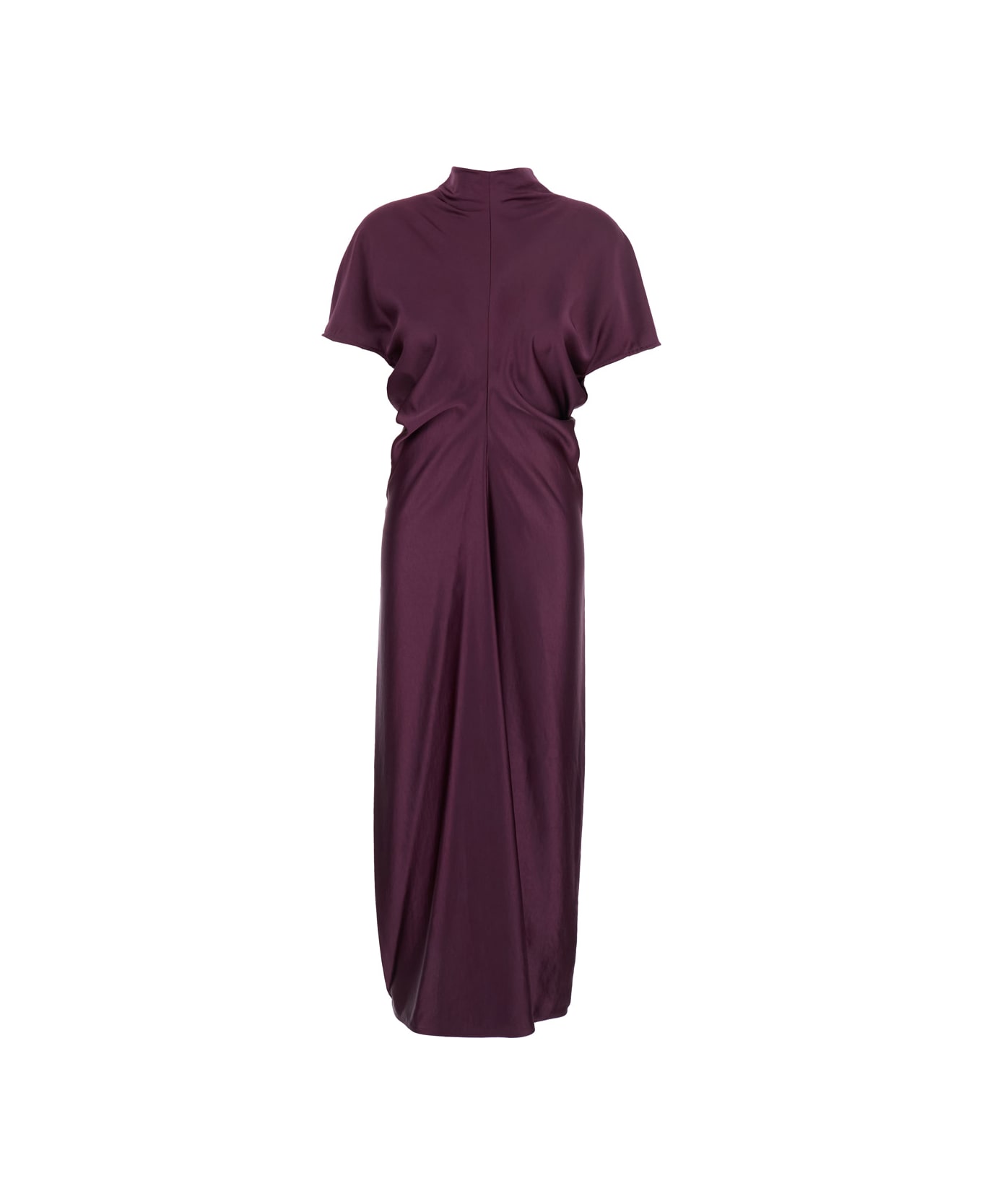 Long dress Violet Stand up collar Short sleeves Hidden back closure Ankle-length Tech fabric Regular fit