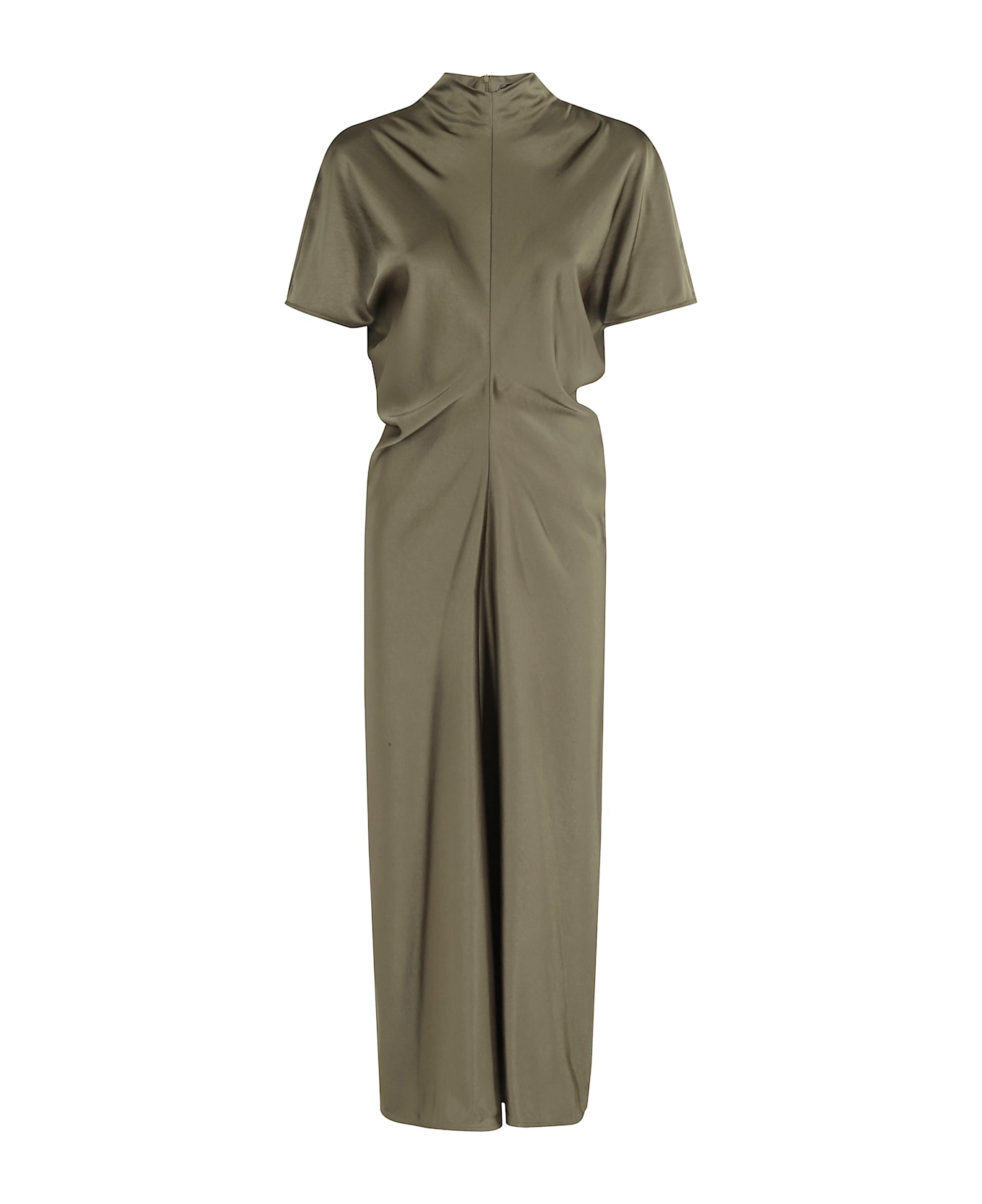 Long dress -Federica Tosi -Khaki color -Short sleeve -High neck -Curled waist -Back zipper closure