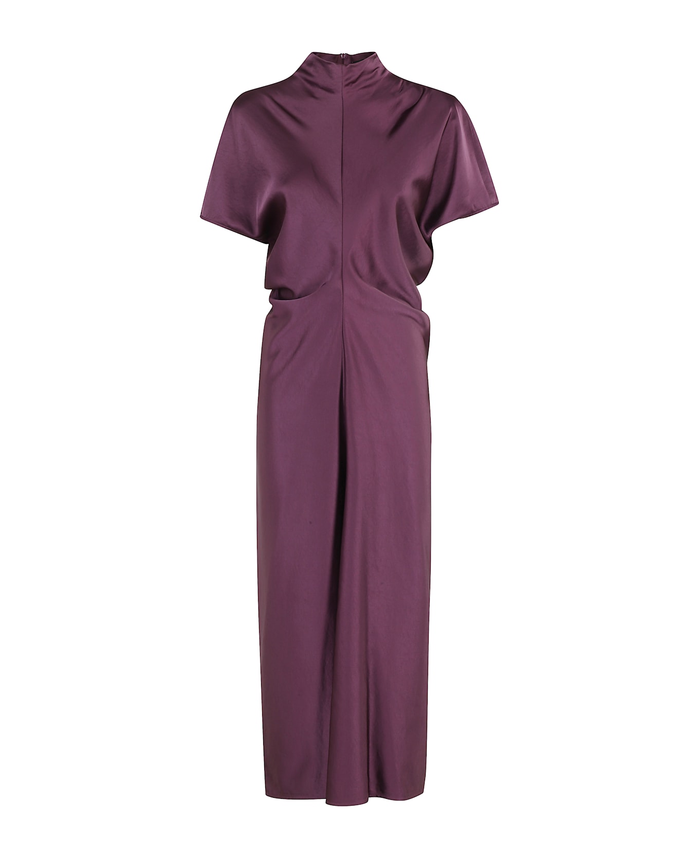Long dress -Federica Tosi -An eggplant color -Short sleeve -High neck -Curled waist -Back zipper closure