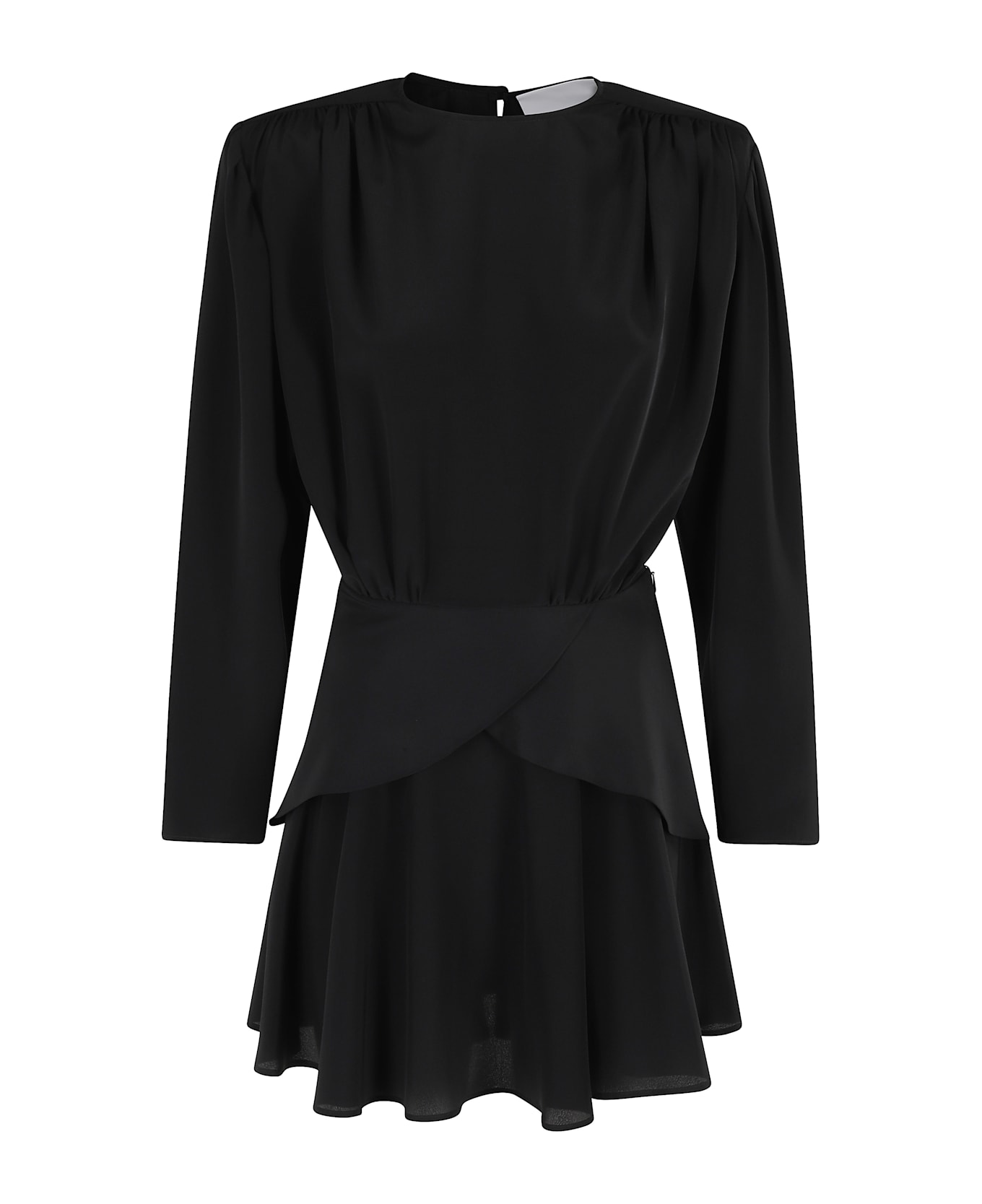 Dress - Erika Cavallini - Black color - Silvana model - Round neck - Padded straps with draping - Long sleeves - Applied ruffles on skirt - Side zipper and back button closure.