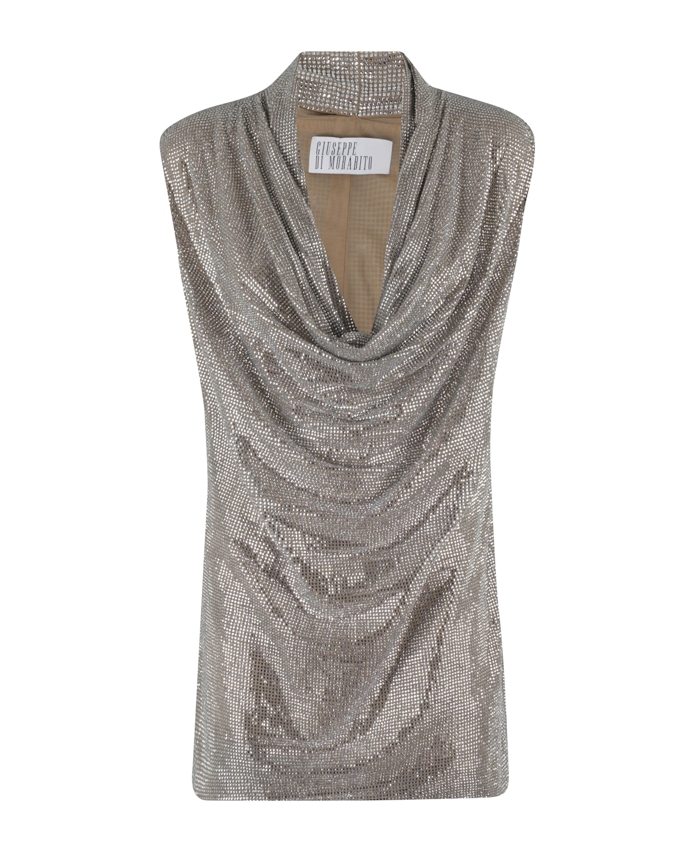 Mini dress -Giuseppe Di Morabito -Color silver -Sleeved -Shoulder neckline -All over rhinestone application