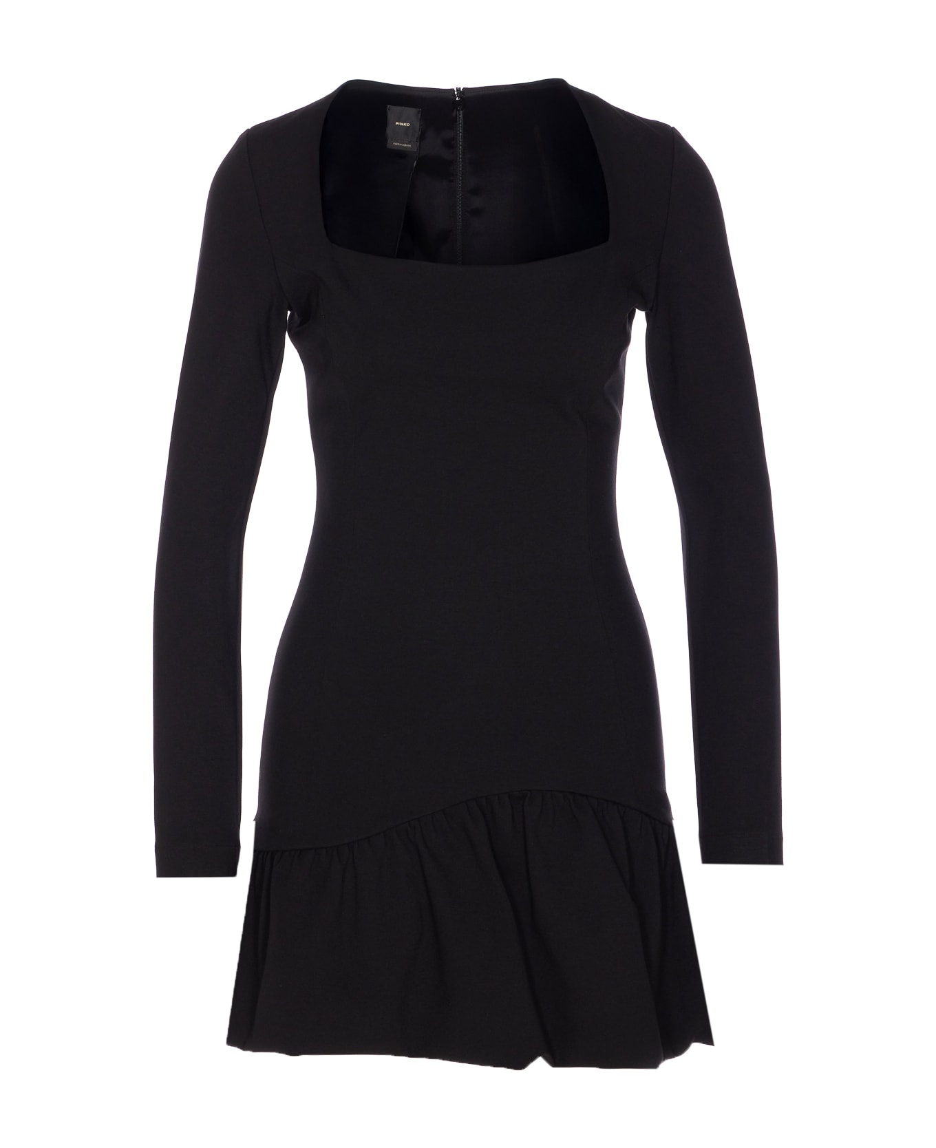 Pinko black Acetosella dress, back zip closure, square neck, flounced gown, long sleeves Composition: 67% Viscose, 28% Nylon, 5% Elasthane