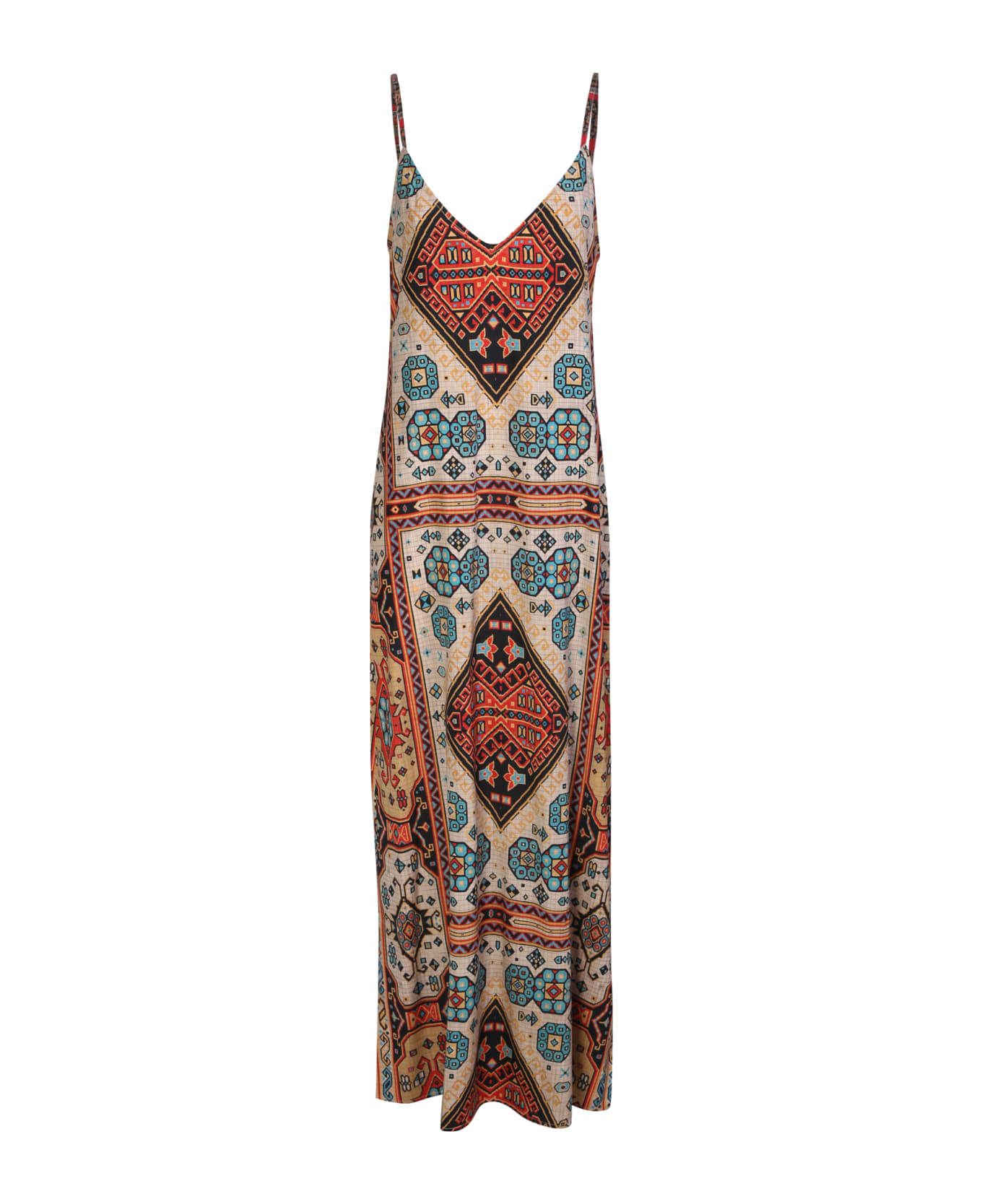 V-neck. Spaghetti straps. All-over graphic print. Ankle length. Straight hem. Colour: multicolor