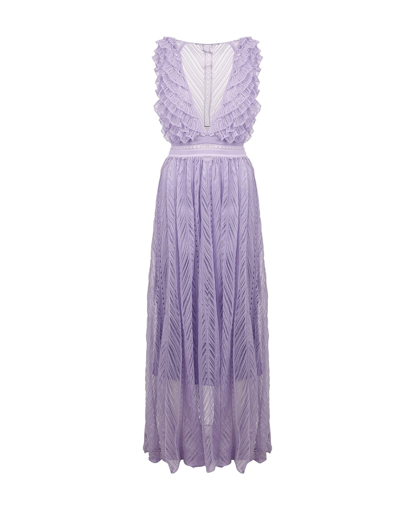 women's long silk dress: sleeveless v-neck zip closure top with ruffles details in trimmings tight-fitting waist skirt with ruffles slip included slim fit composition: 94% silk, 4% viscose, 1% polyester, 1% polyamide lining: 93% silk, 7% elastane