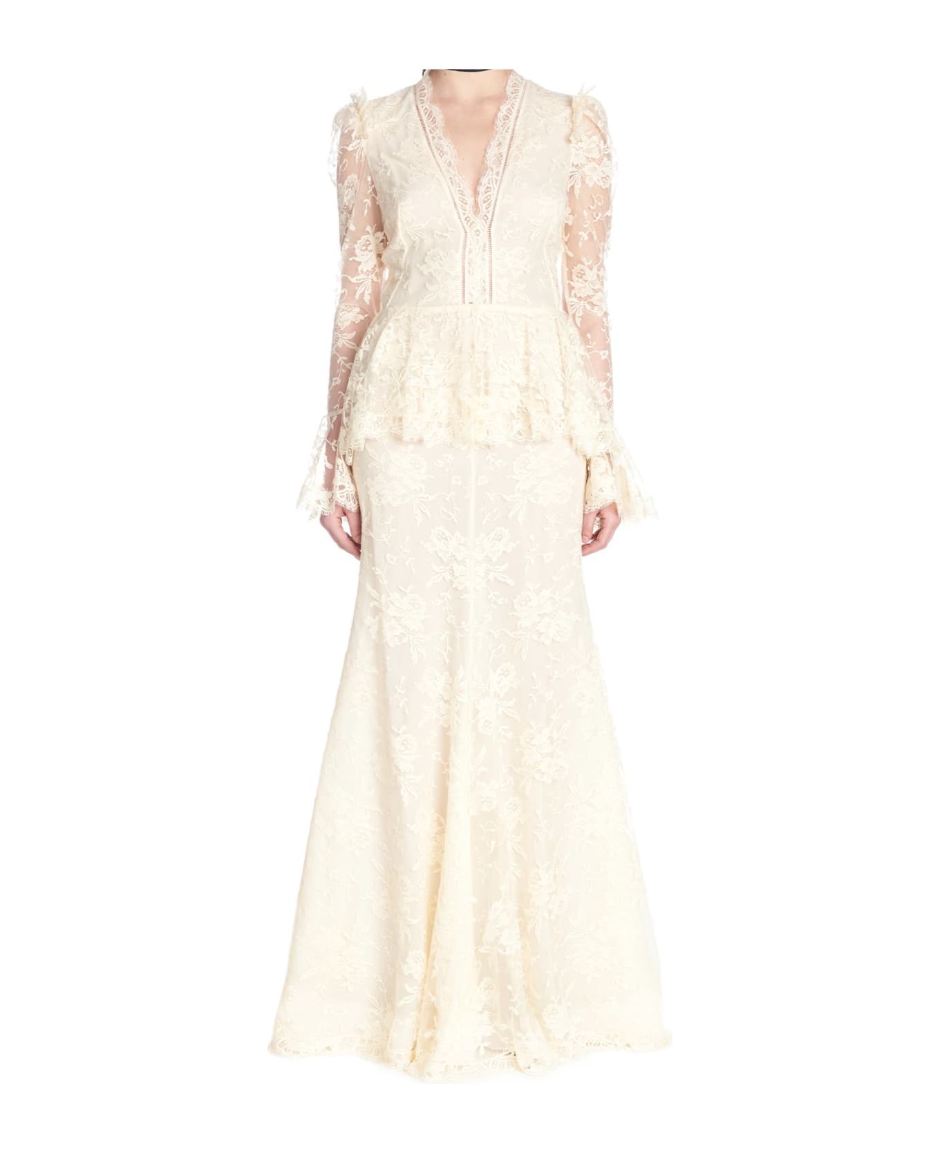 Dress From Alexander Mcqueen: Cotton Lace Dress With Peplum Composition: 63% cotton, 37% polyamide