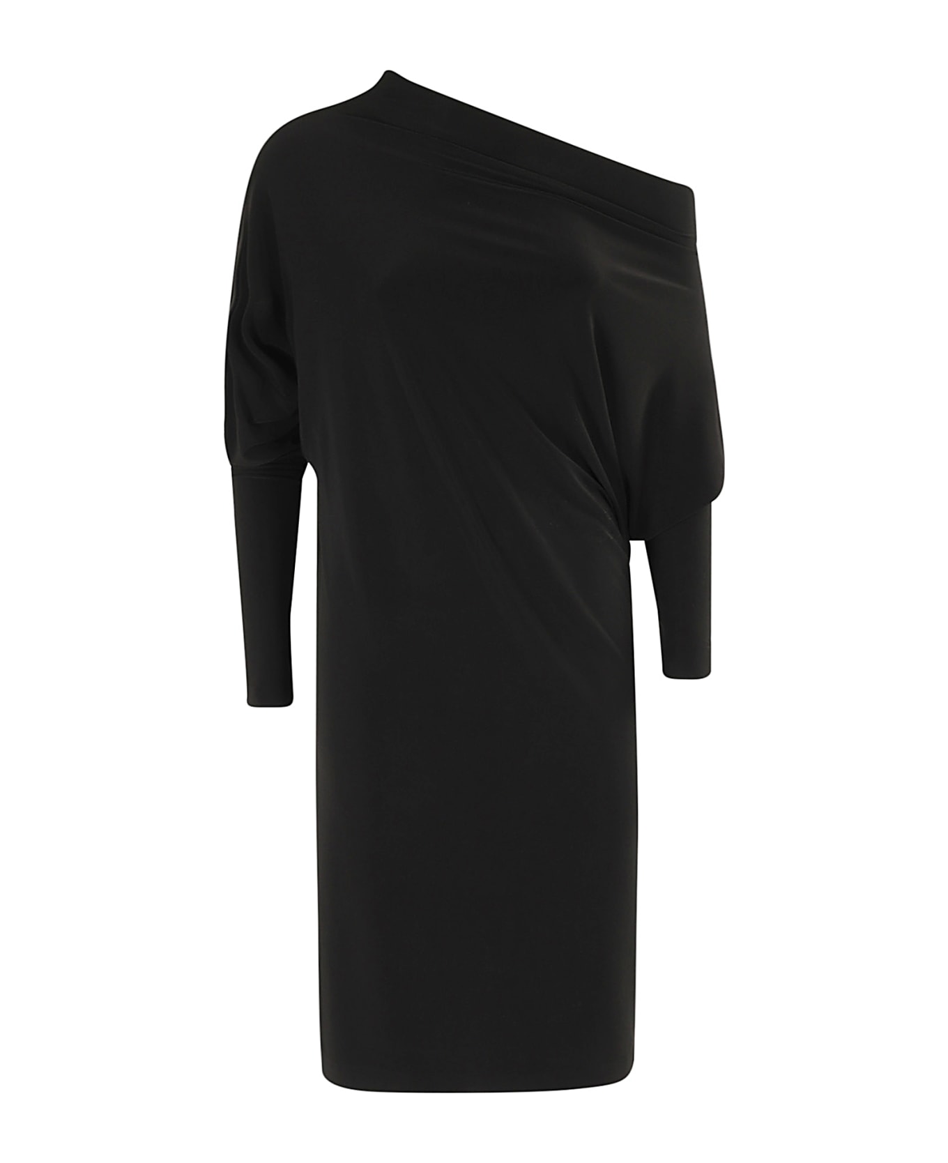 All In One Dress - Norma Kamali - Black color - Stretch fabric - Oblique boat neckline - Long dolman sleeve - Knee length - Loose fit