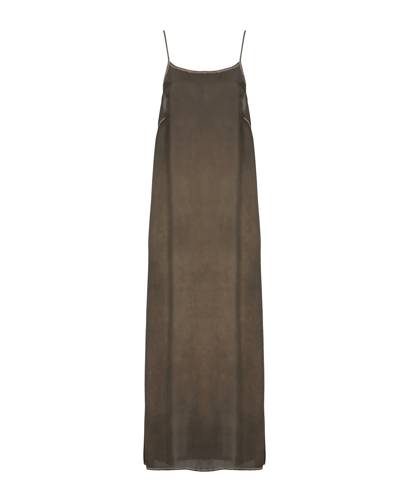 - Brown Uma Wang silk dress for woman - Crewneck - Sleeveless - Adjustable shoulder straps