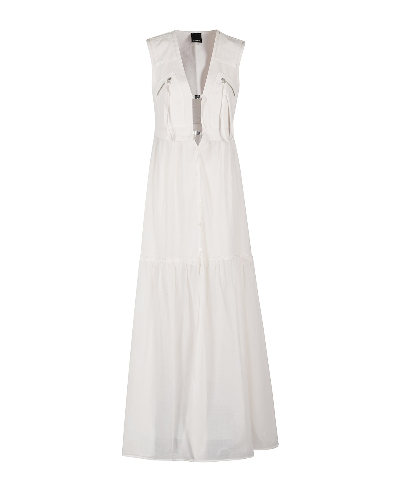 Andres dress - Pinko - white color - vest cut top - front hook-and-eye closure - zippered chest pockets - long cotton voile skirt - button details - foot length