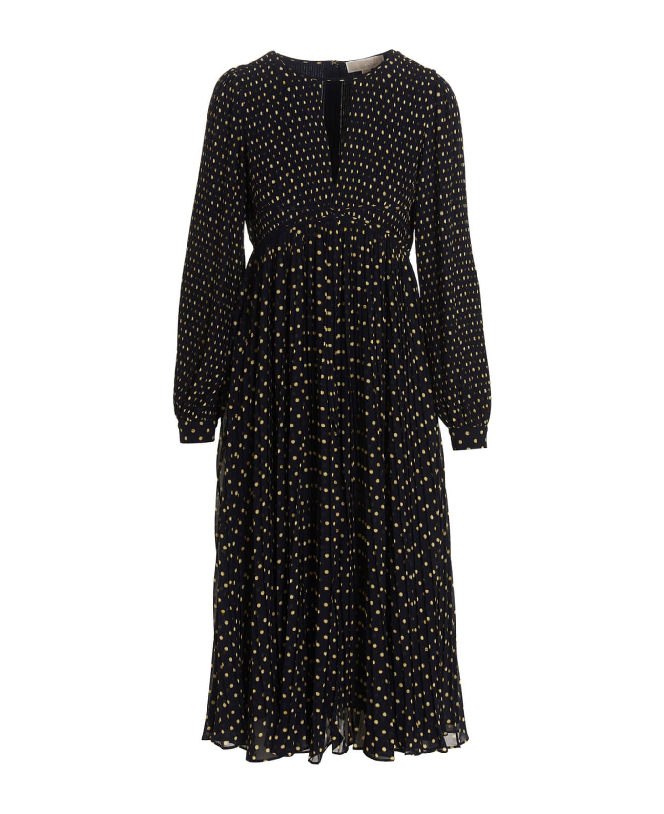 Astror' pleated fabric dress with all-over print, long V-neck and long sleeves.