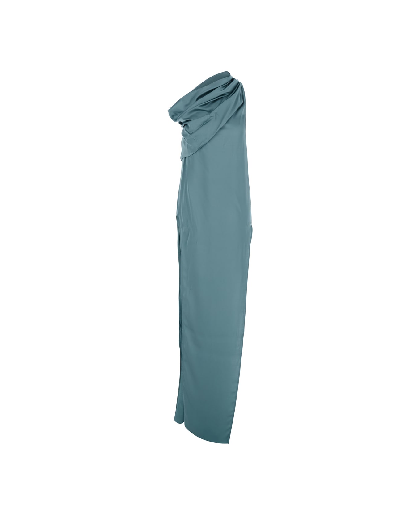 'athena Arrowhead' Light Blue Long Dress With One Shoulder Design And Side Slits In Viscose And Acetate Blend Woman