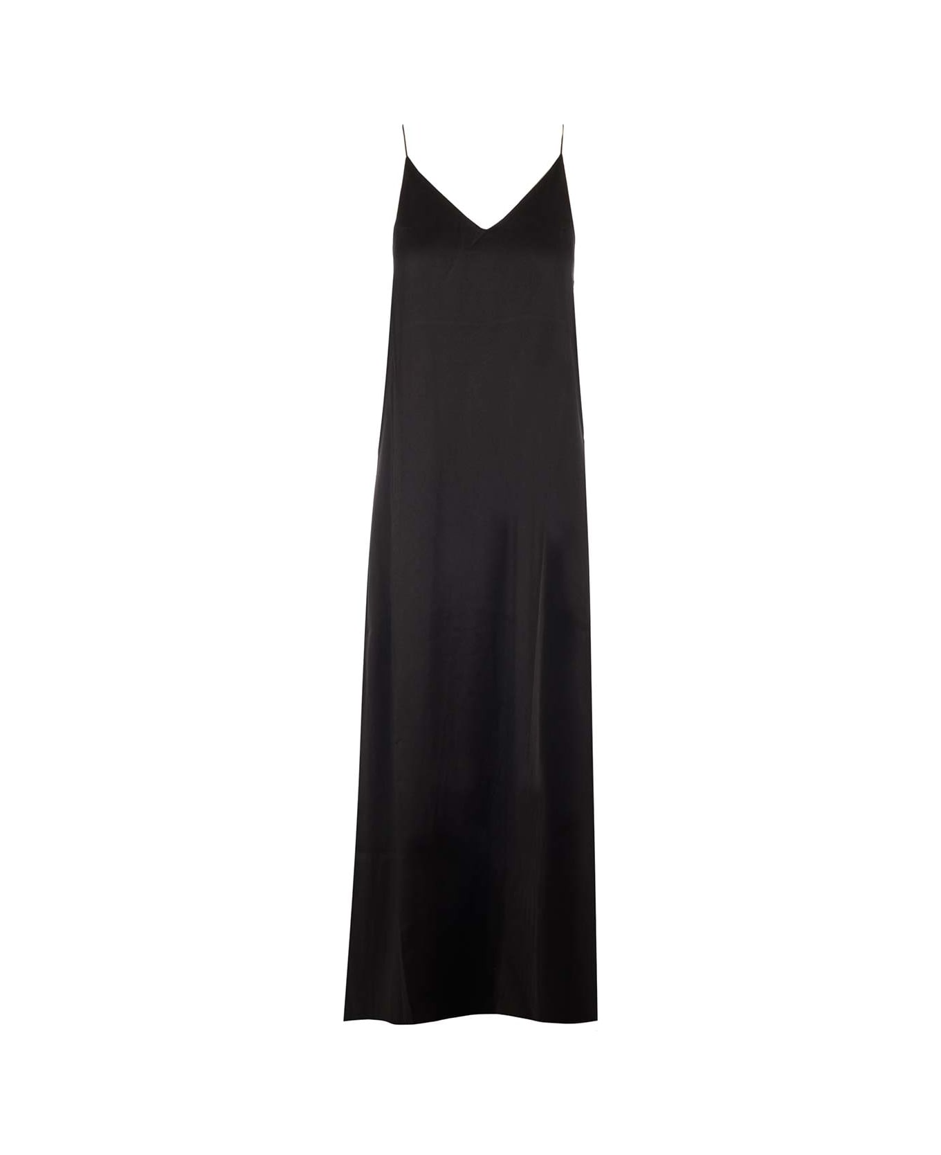 Black "Athena" long dress from The Nina Studio with thin straps woven on the back.