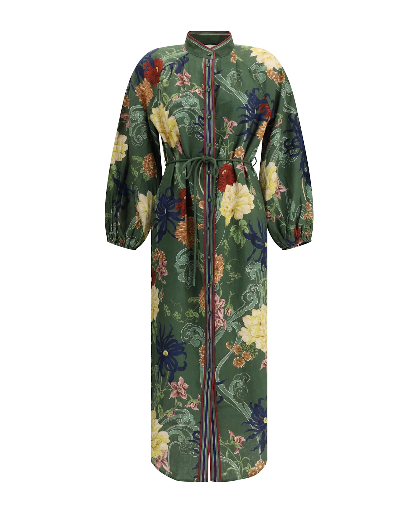 The avery chemisier dress by alemais is an elegant and feminine piece with a korean collar that gives a refined touch. the front button closure and balloon sleeves create a balance between classic and modern. the floral pattern adds freshness to the design, while the knotted drawstring waist allows you to customize the fit, accentuating the silhouette. perfect for a sophisticated and trendy look.
