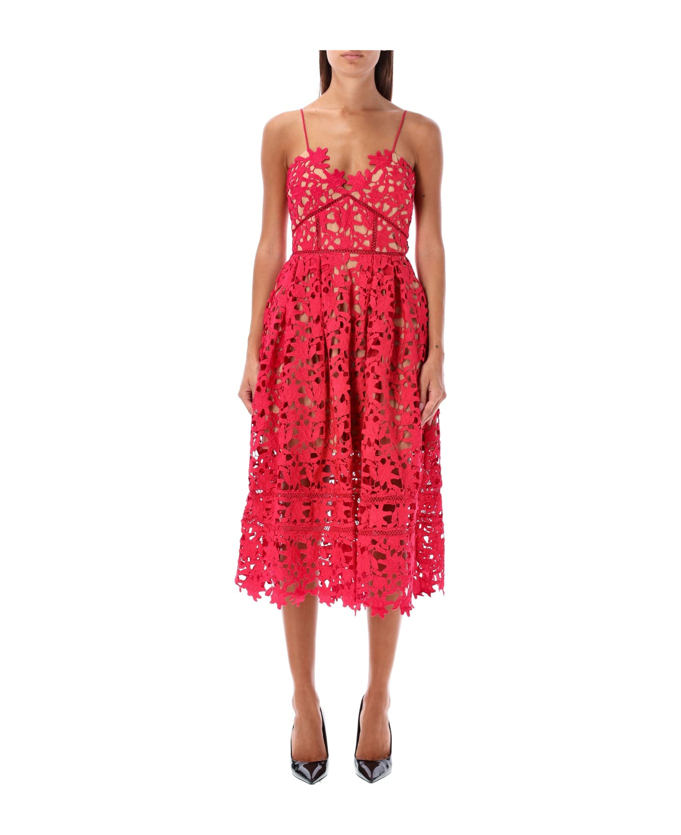 Azalea Midi Dress By Self Portrait. Featuring: Lace Dress V-neck Thin Shoulder Straps Perforations Rear Zipped Closure Bare Neckline At Back Model Is 1,72 M Tall And She Is Wearing Size 8