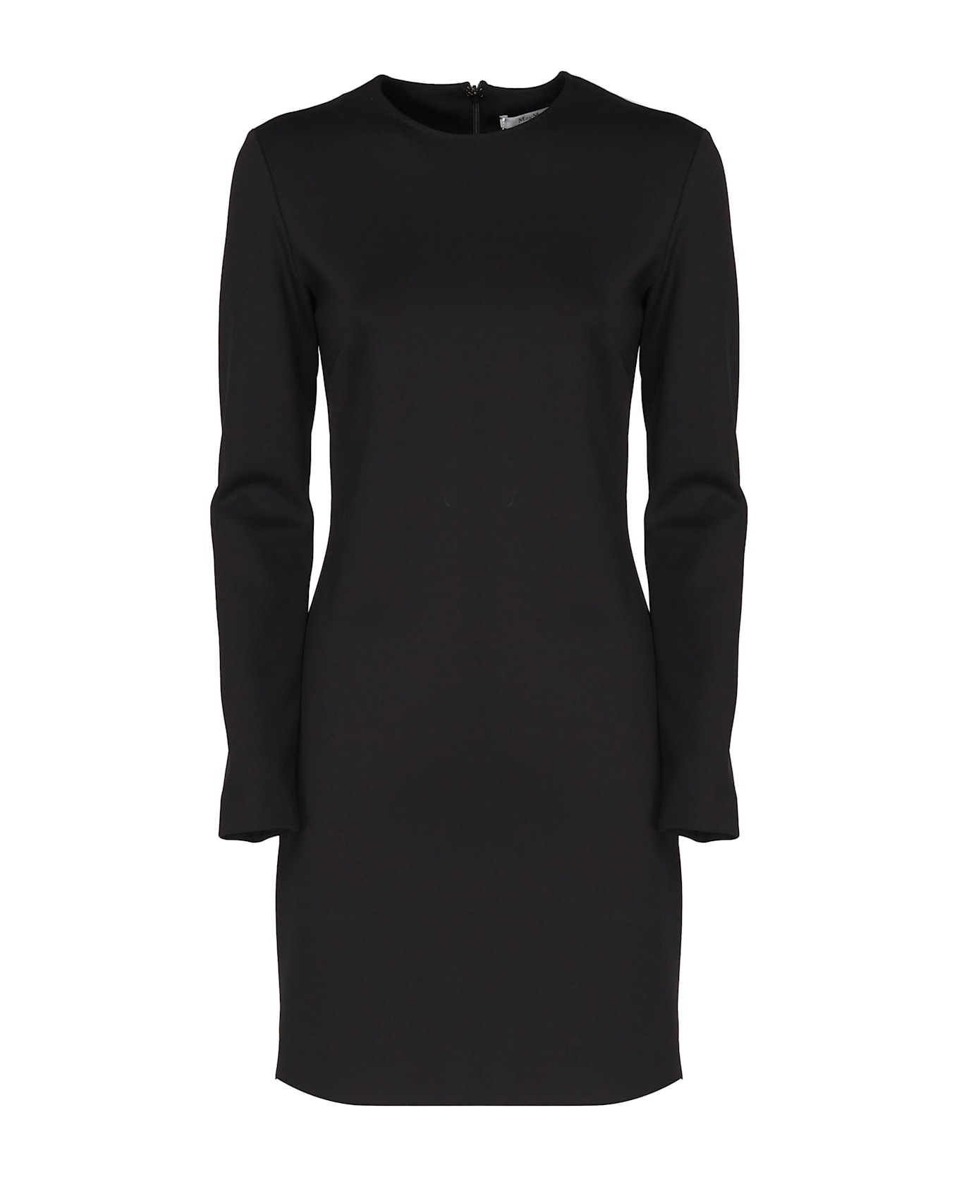 -Neckline -Long sleeves -Concealed back zip closure -Sheath model -Rounded hem -Fitted fit -Size shown in photo is S -Made in Italy -Colour: Black