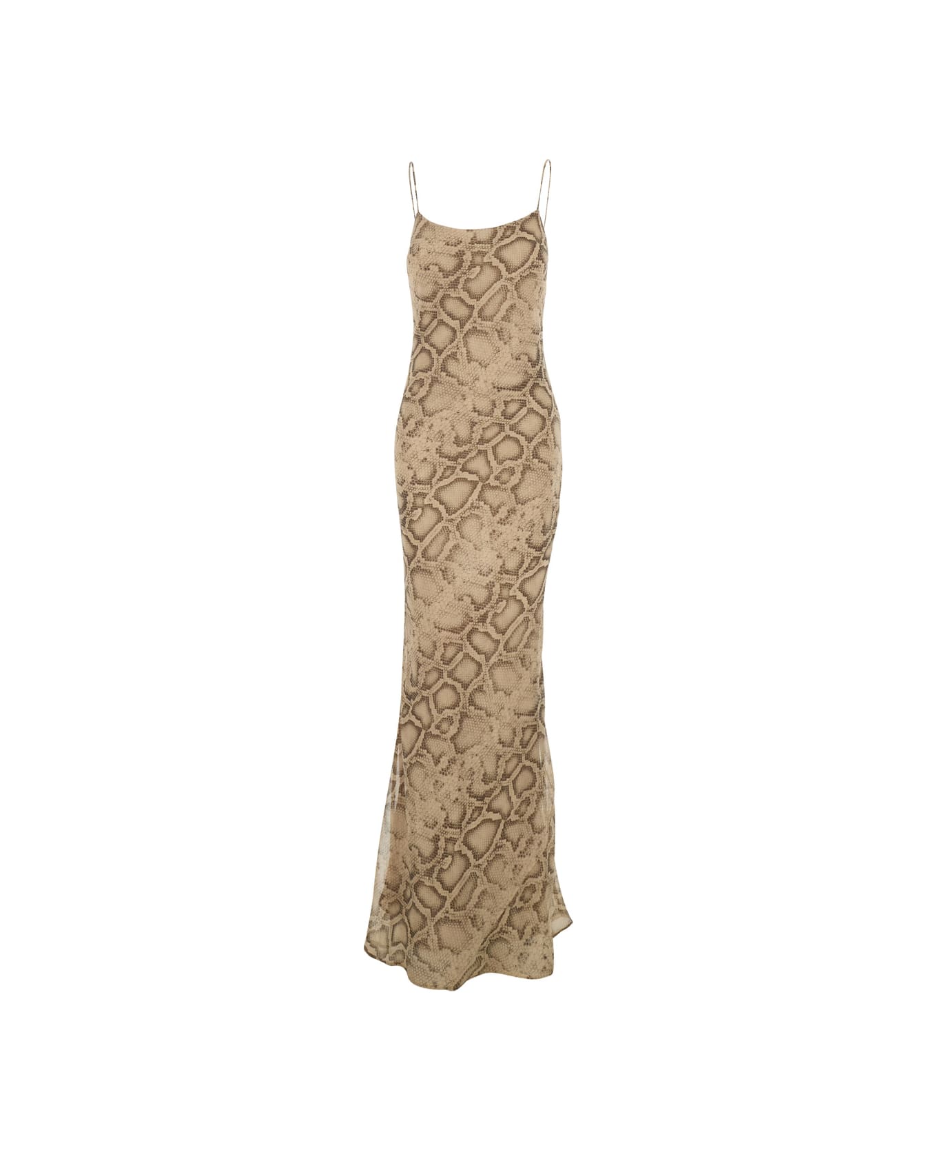 Beige Long Dress With Thin Straps And All-over Python Print In Fabric Woman
