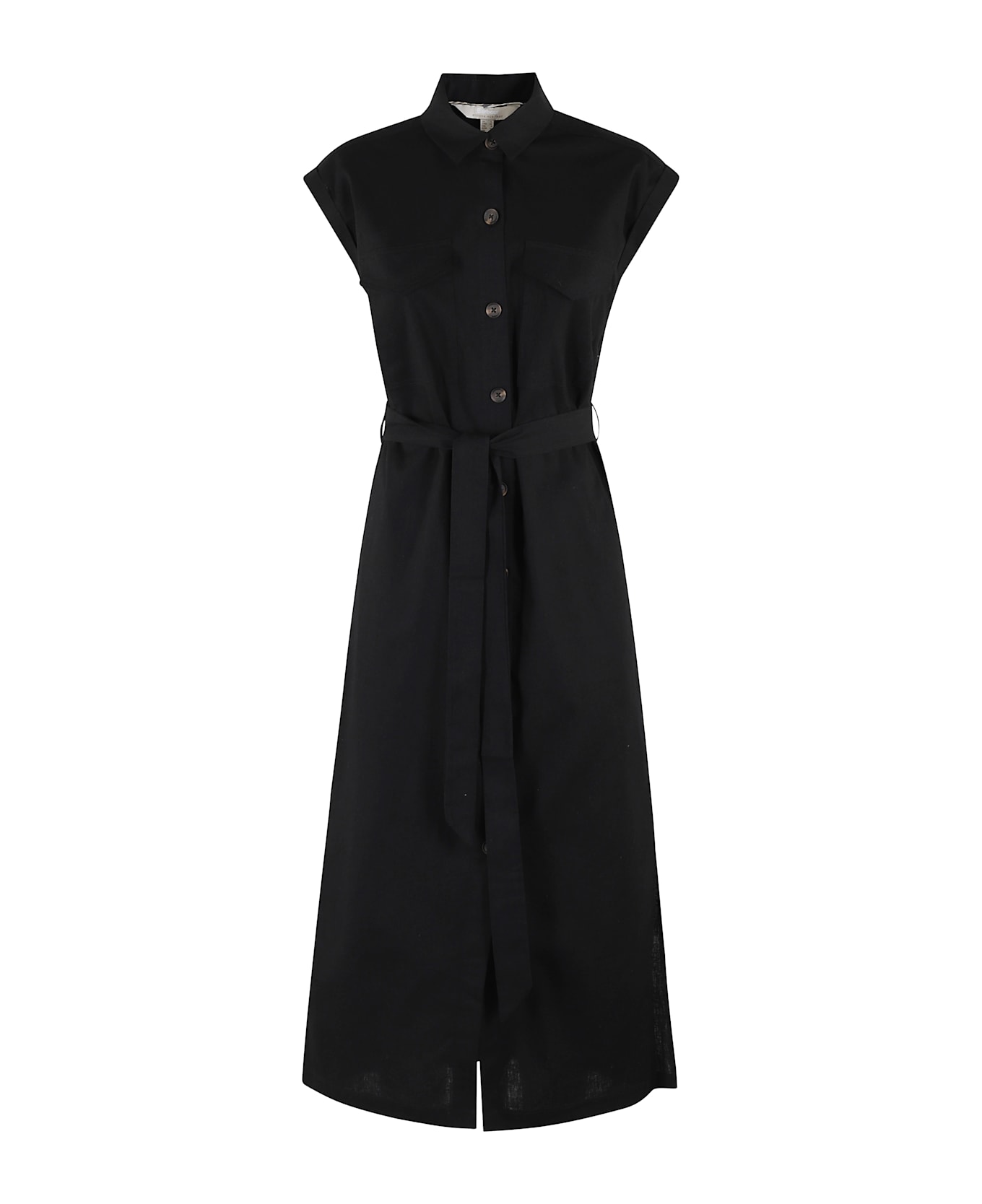 Birdie Maxi dress - Barbour - Black color - Linen and cotton blend fabric - Shirt collar - Sleeveless with lapels - Front flap pockets - Removable waist sash - Front button closure - Regular fit