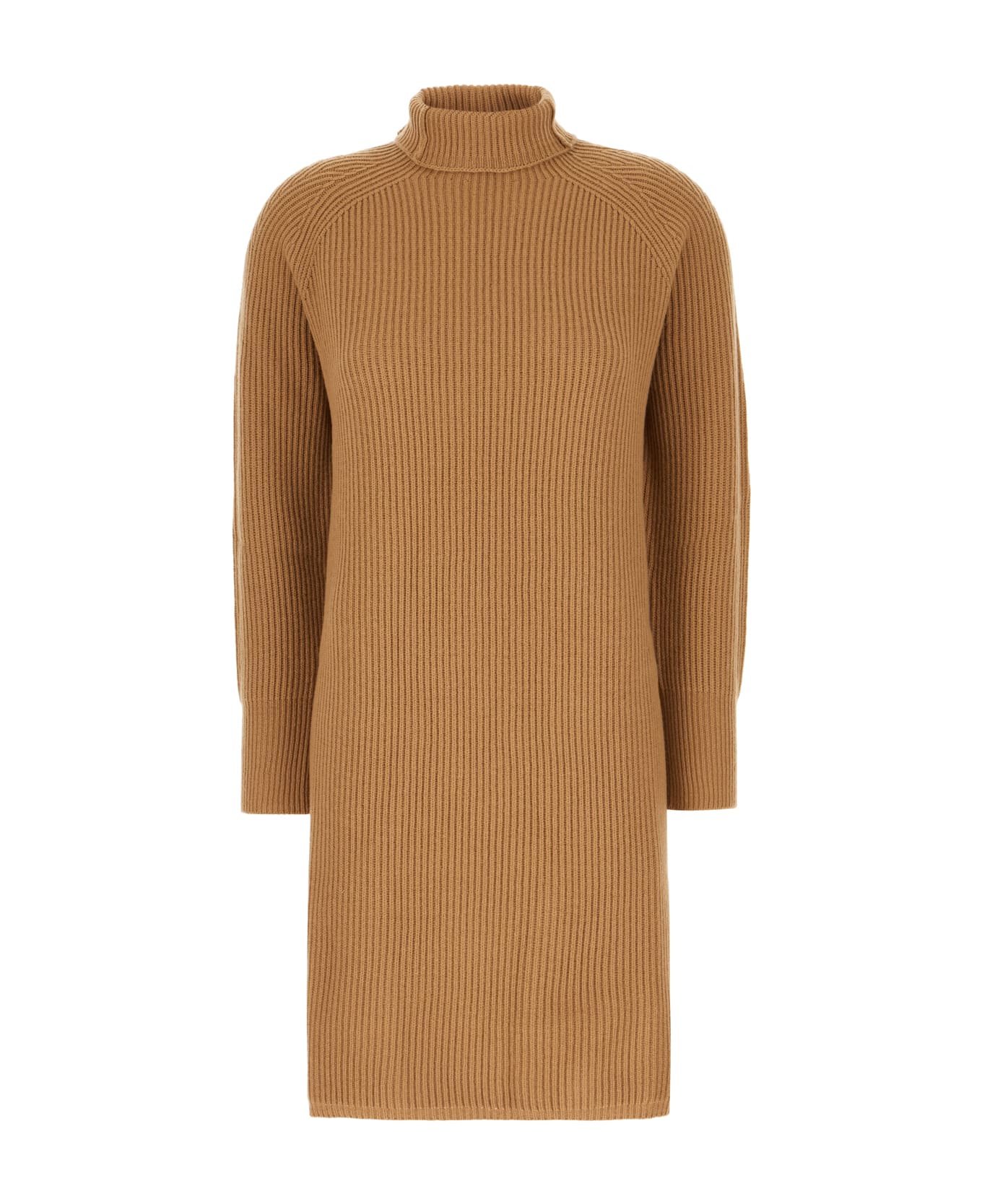 Knitted sweater dress realized in wool and cashmere characterized by mock turtleneck. -Raglan sleeves