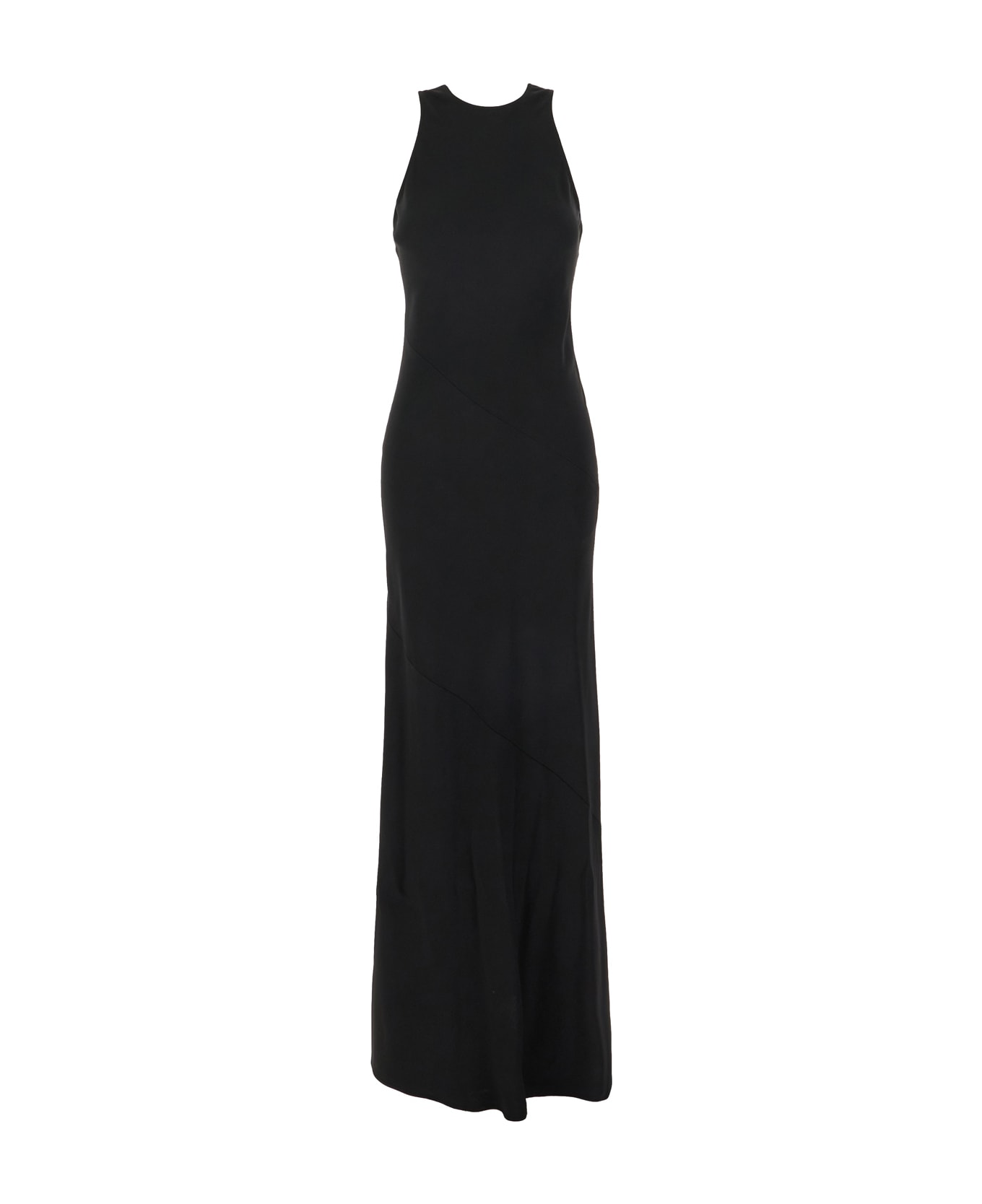 Flared long dress realized in acetate blend. -Round neckline -Concealed zip and hook closure at the back -Unlined