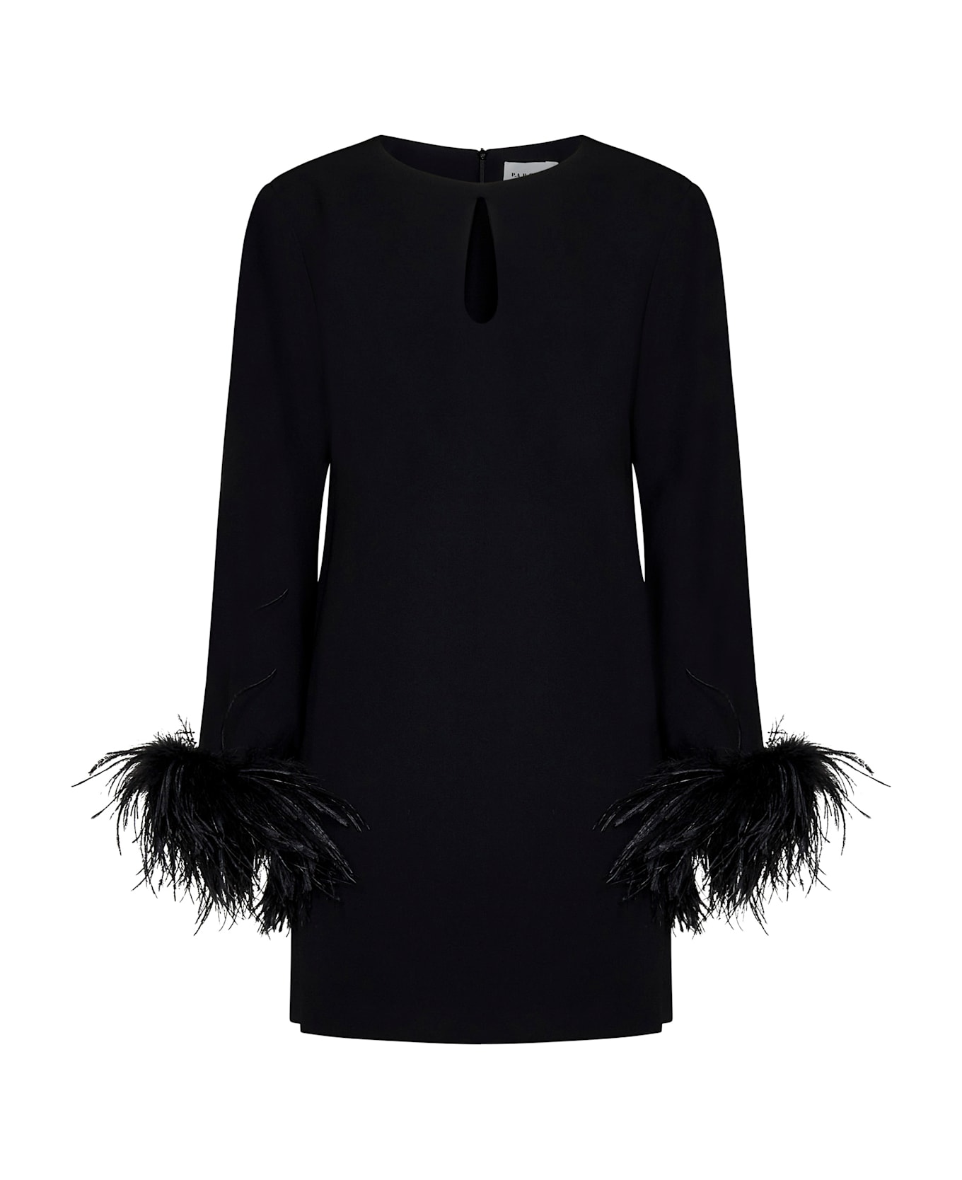 Back Concealed Zip Closure Crewneck, Teardrop Cut-out At Front; Long Sleeves, Tone-on-tone Turkey And Ostrich Feathers Trim At Sleeves Bottom, Flared Sleeves Bottom Regular Fit Black Color , 100% Polyester: Decoration: Turkey Feathers - Ostrich Feathers Made In Italy