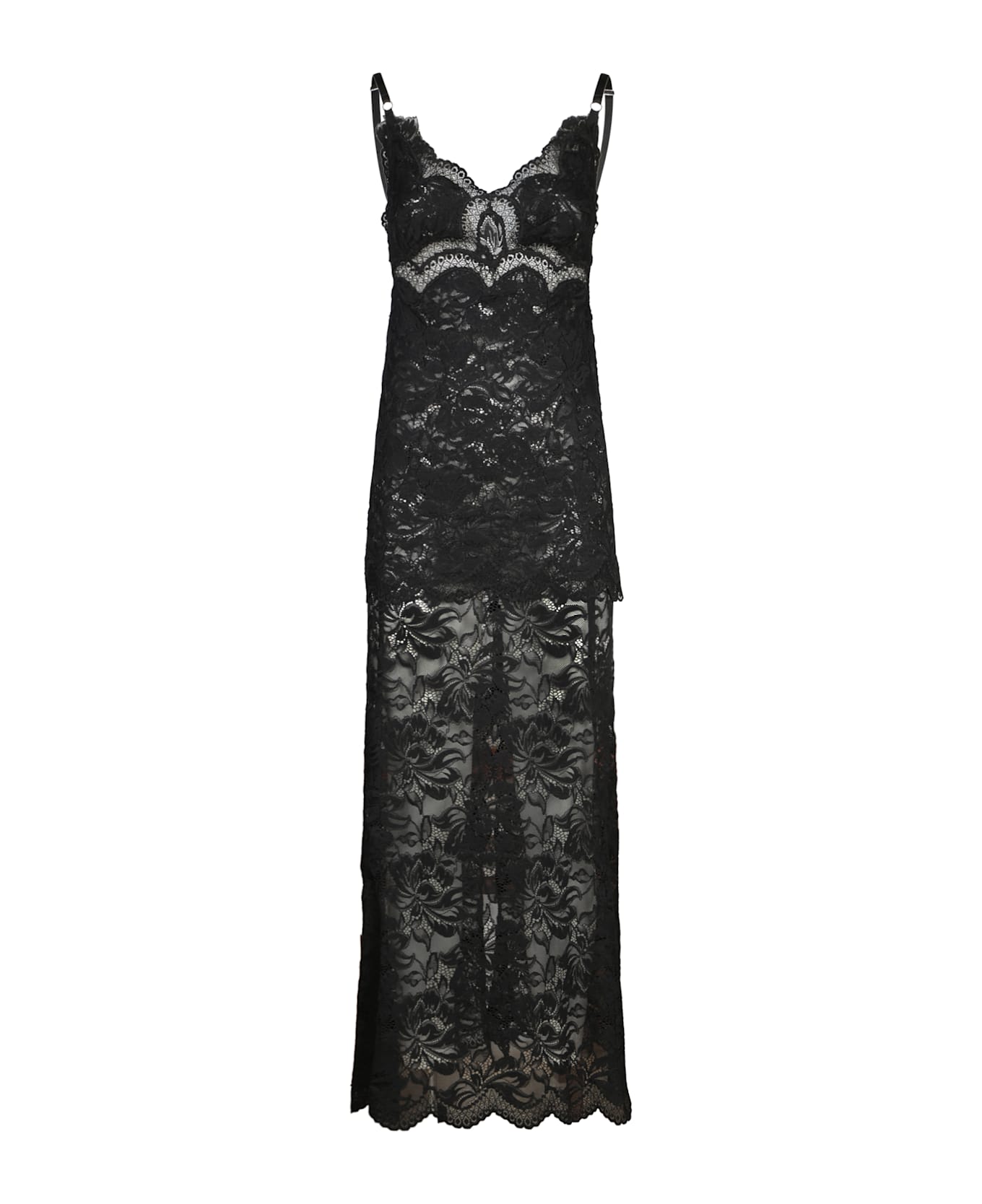 This Paco Rabanne dress accentuates elegance with its detailed black lace and the addition of transparent motifs that add a touch of mystery. Ideal for formal evenings, it combines comfort and sophistication in a unique design.