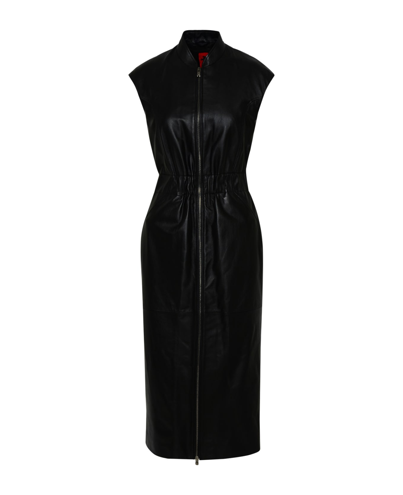 Hard collar, zipper closure, elastic waistband, front pockets, back Rampant Calf hair patch