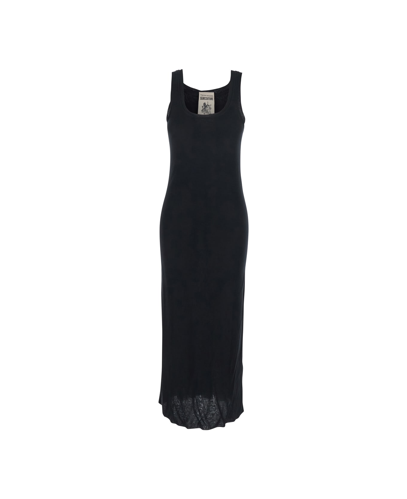 Black Long Sleeveless Dress With U-neck In Modal Woman