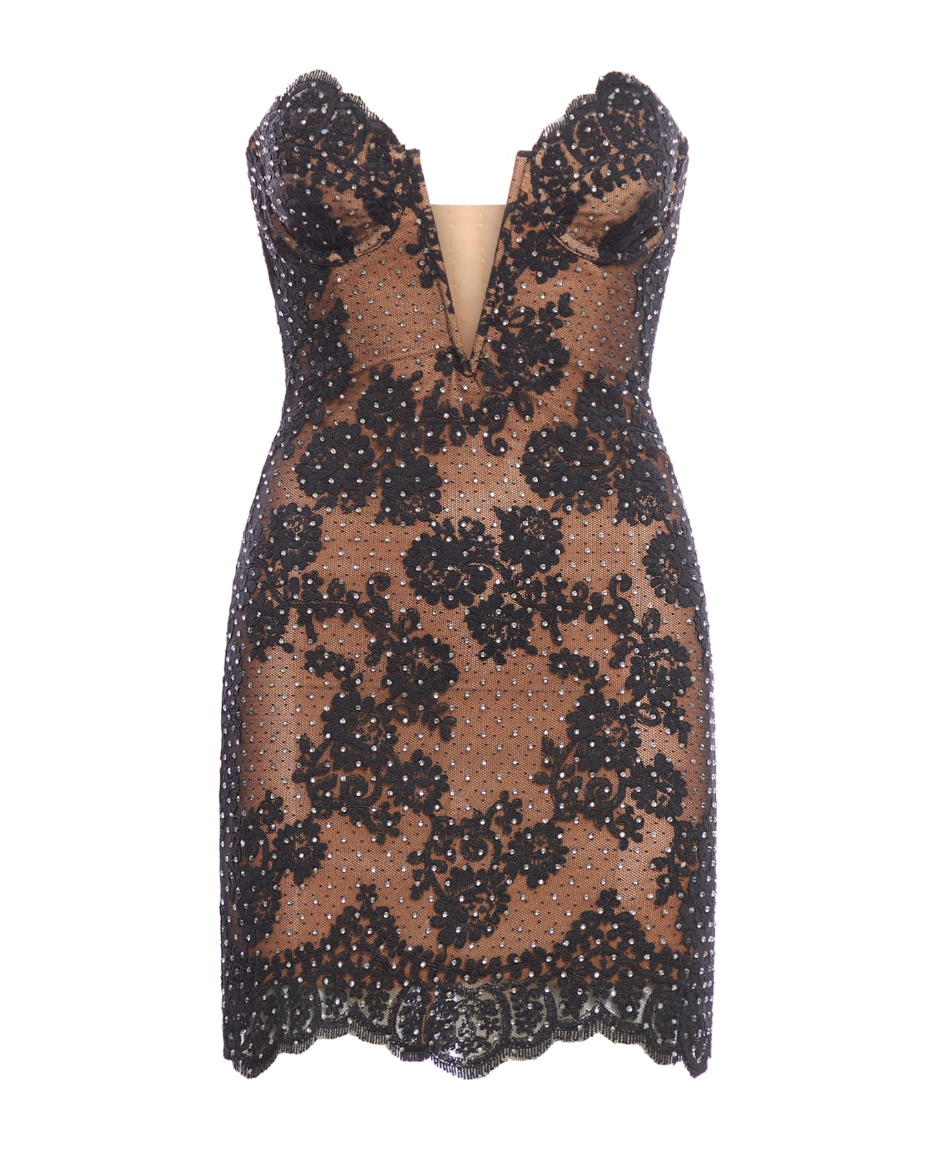 Black Rhinestone Lace Bandeau Mini Dress