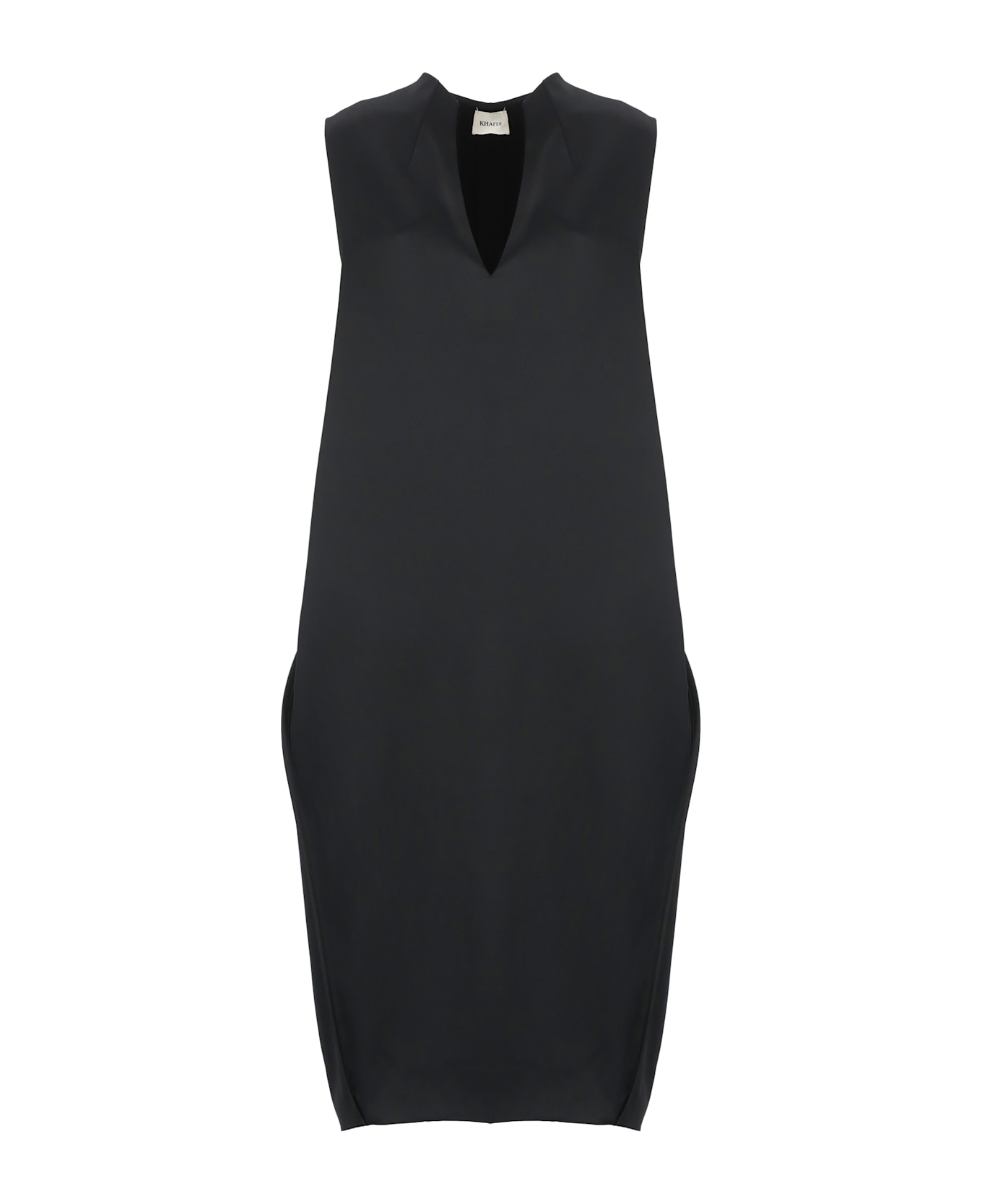 - Black Khaite dress for woman - V neckline - Sleeveless - One rear vent at hem Composition: 83% Acetate, 17% Viscose