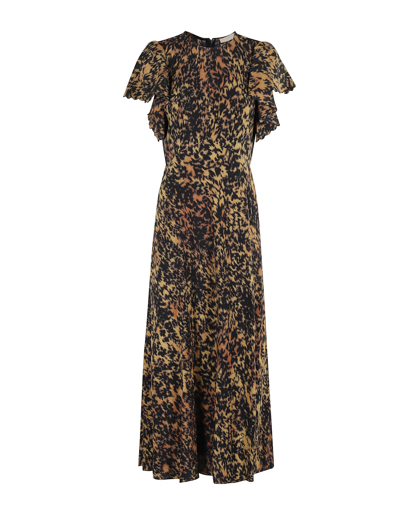 Long dress -Ulla Johnson -Multicolor -Neckline -Short sleeve -Animal pattern