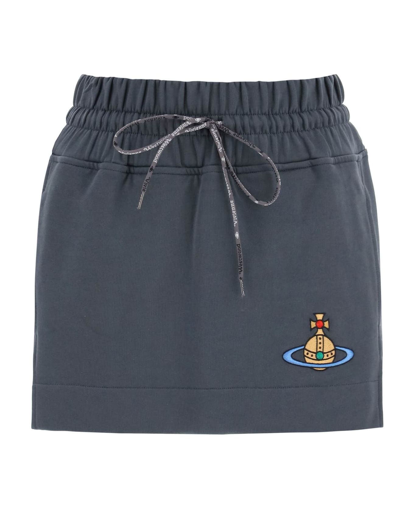 This Vivienne Westwood miniskirt is made of organic cotton jersey, with a slightly flared design and an asymmetrical hemline. The elasticated waistband is reminiscent of boxer shorts and adds a playful touch to the piece. It also features side pockets seamlessly integrated into the seams and is finished with the iconic multicolored Orb embroidered on the front. The model is 177 cm tall and wears size XS. Composition: 100% CO