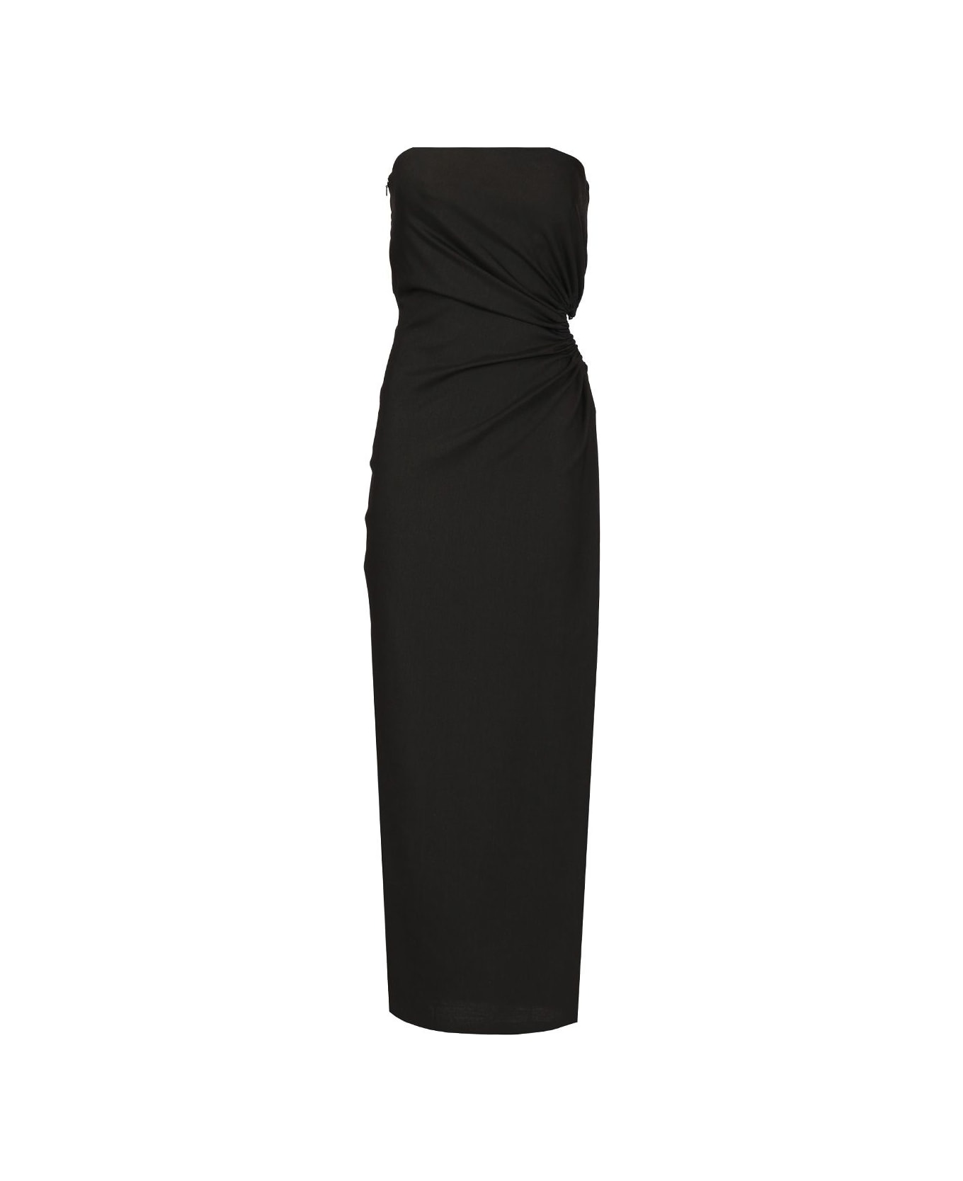 Bustier dress by Max Mara in wool, mohair and silk canvas, with a fitted silhouette and elastic cut-out detail, gathered and draped on the left side