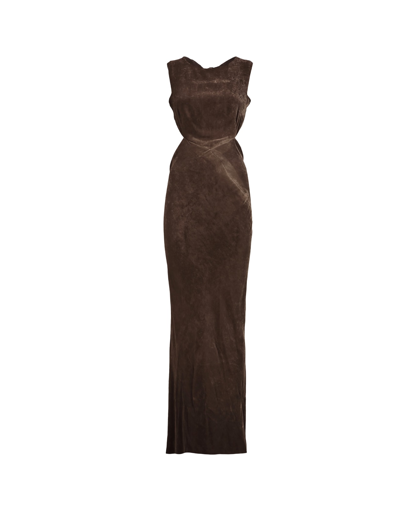 Rick Owens Concordians open back gown in dark dust velvet, flor length, the pointed top is sewn onto the bias-cut skirt. GTIN code: RP02E4508 V
