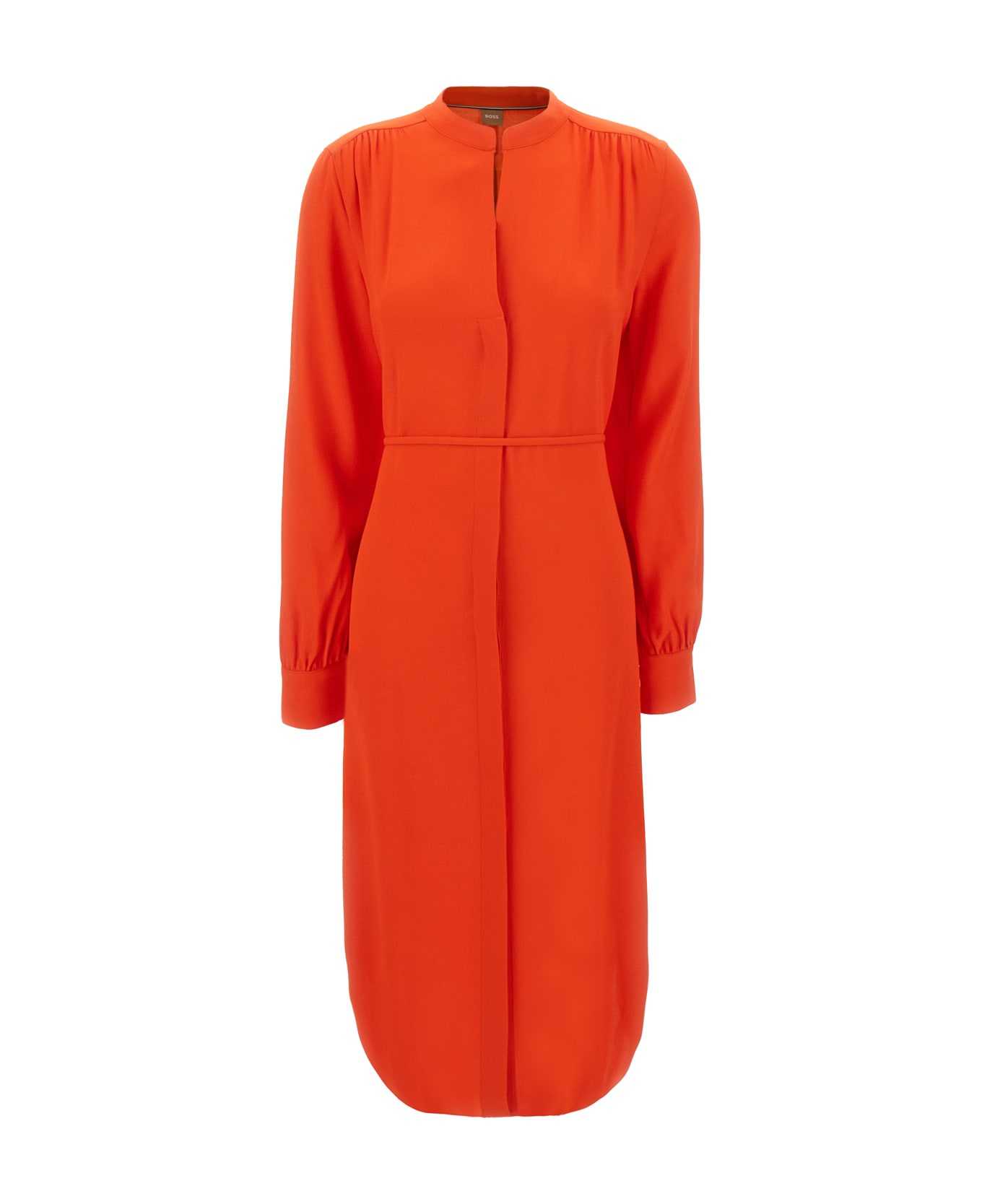 Midi-length shirt dress realized in pure viscose enriched by detachable tonal fabric belt to tie at the waist. -V neckline -Concealed buttons closure at the front -Buttoned cuffs -Rounded hemline -Lateral slits on the hemline -Unlined