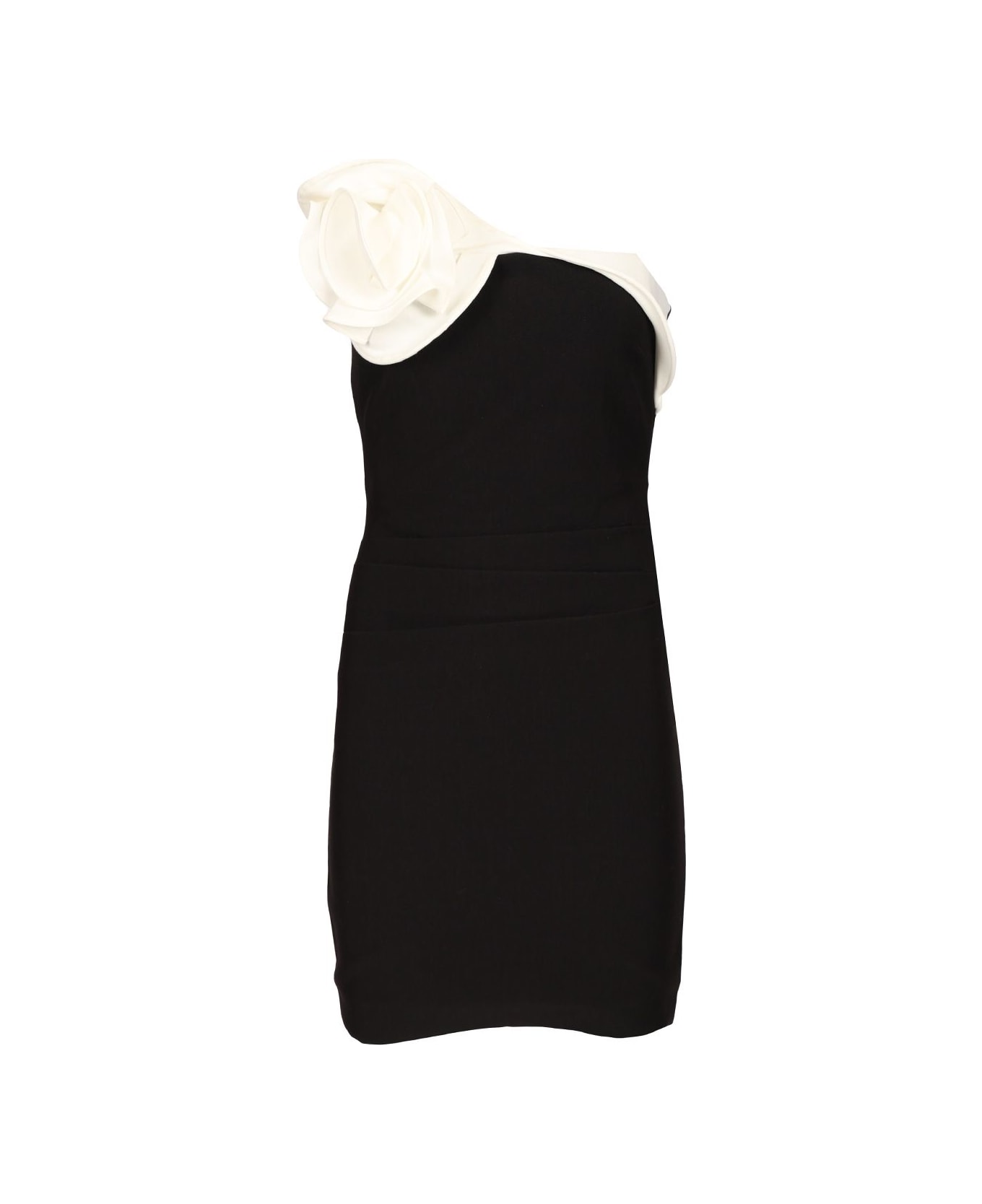 Roland Mouret crepe minidress, strapless with structured floral drape in contrasting crepe fabric, internal boning and fully lined. Fitted fit with wide horizontal pleats at the waist.