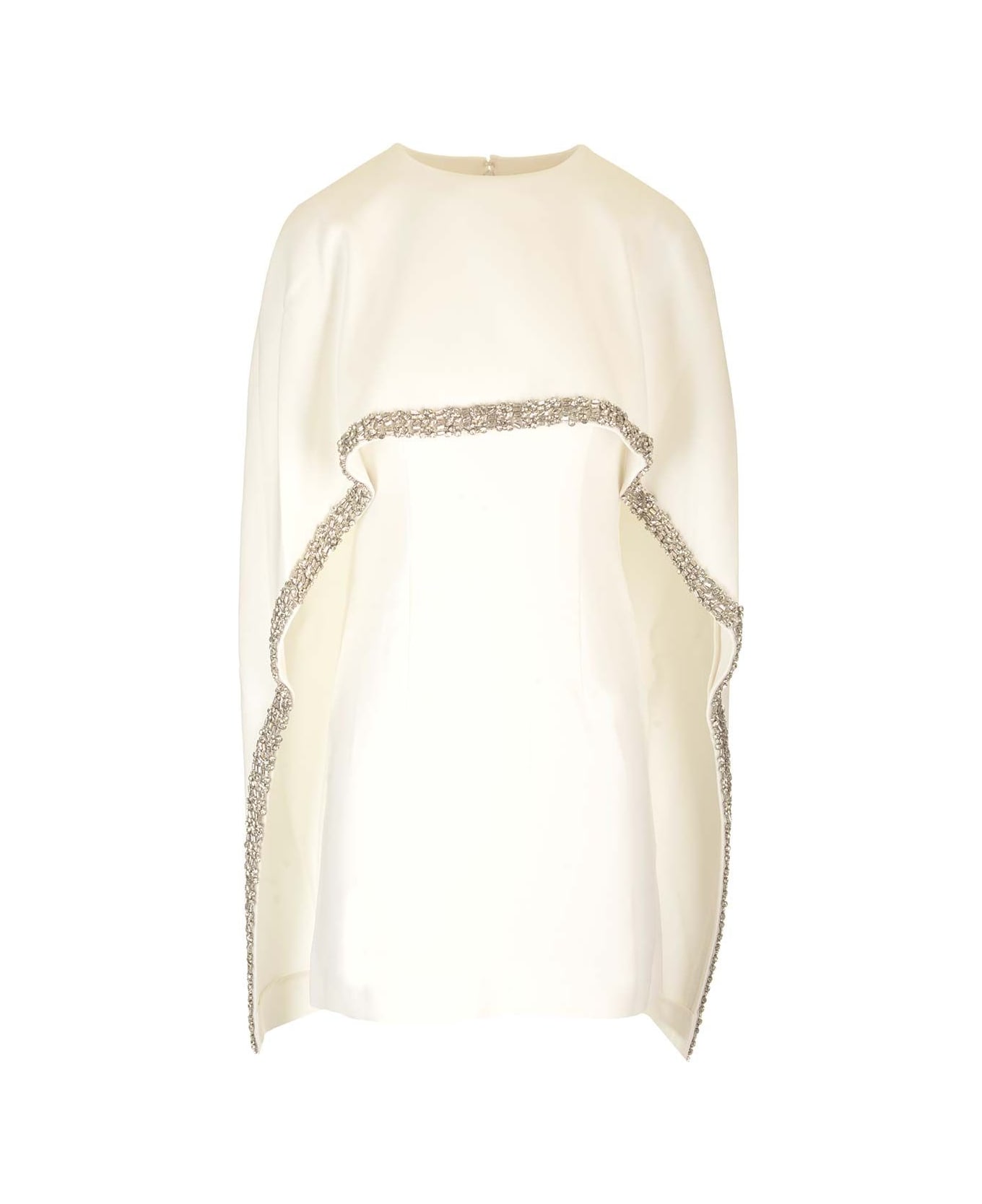 Crepe satin mini dress from Roland Mouret with long sleeves with crystal-embellished cape, hidden zip closure, lined bodice and skirt.