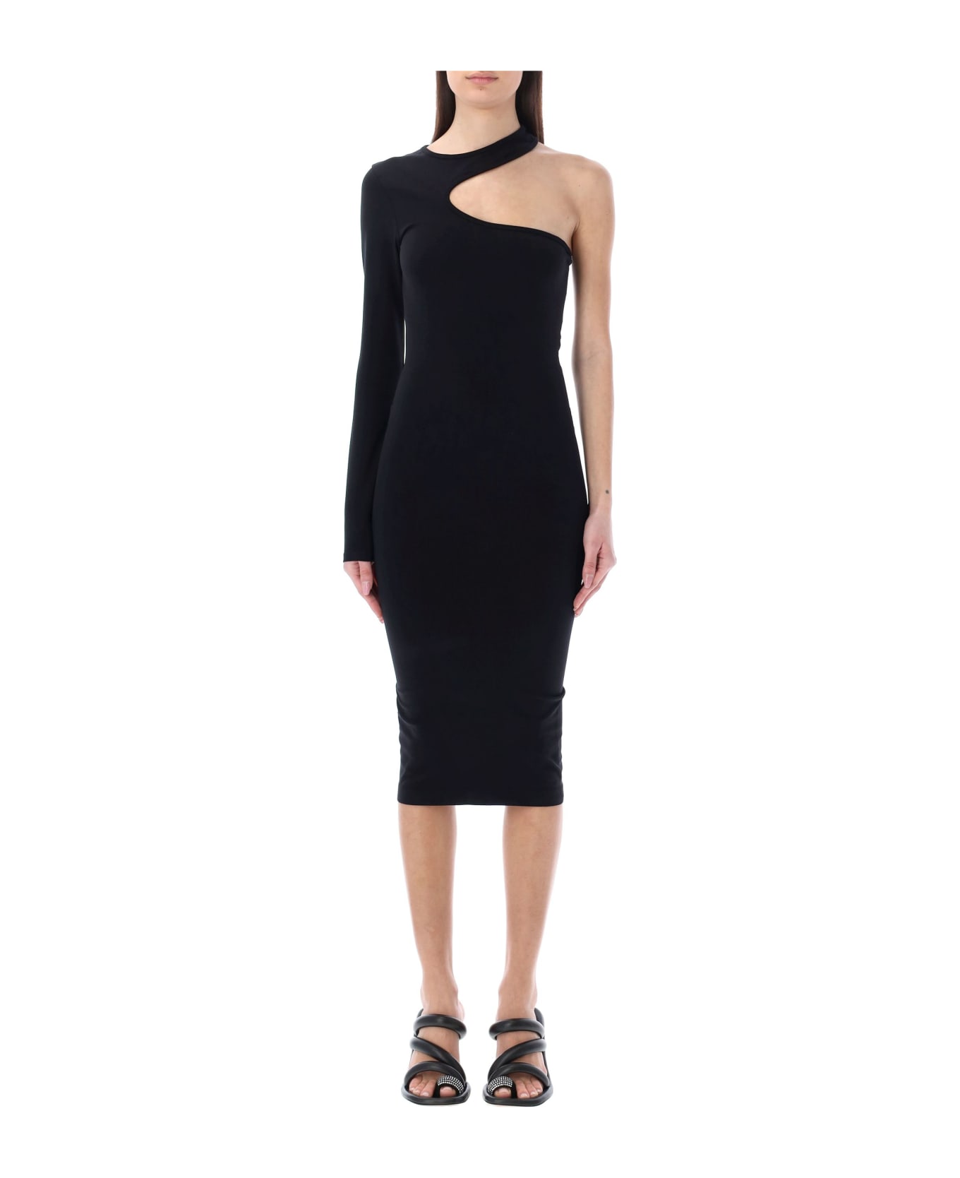 Stretch Cut-out Dress By Helmut Lang. Featuring: One-shoulder Short Sleeve At Right Cut-out At Front Fitted Straight Hem Mid-length Model Is 1,72 M Tall And She Is Wearing Size Xs/s