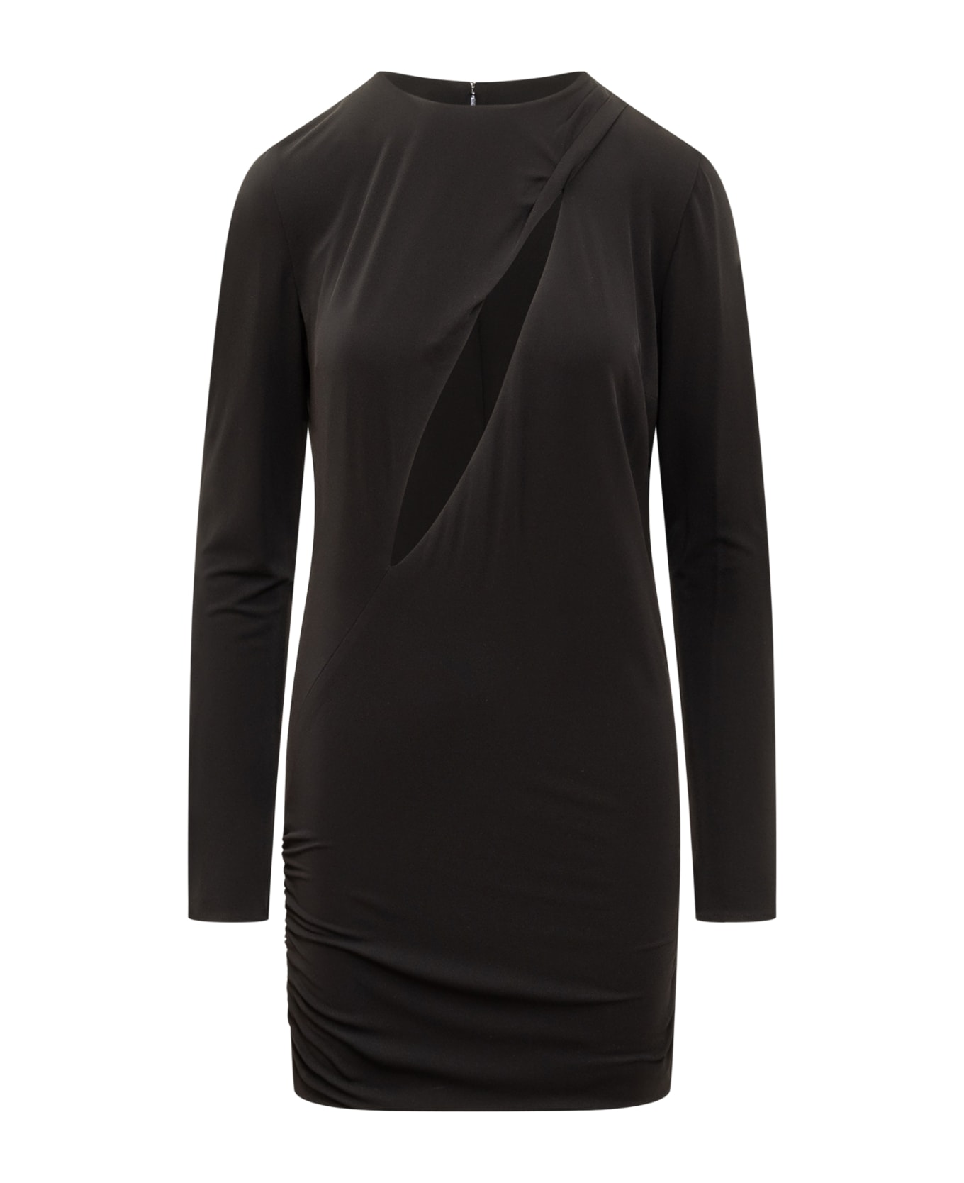 Mini dress with long sleeves. Girocllo. Zip closure on the back. Cut-out effect cut on the front and back. Composition: 95% Viscose, 5% Elastane