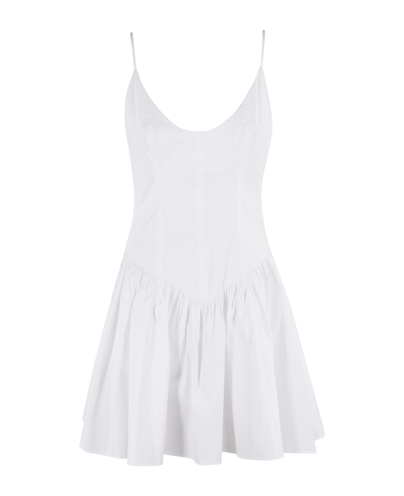 Dress - Staud - White color - Goddess mini model - Fitted bodice - Dropped waist - Adjustable straps - Back zipper closure