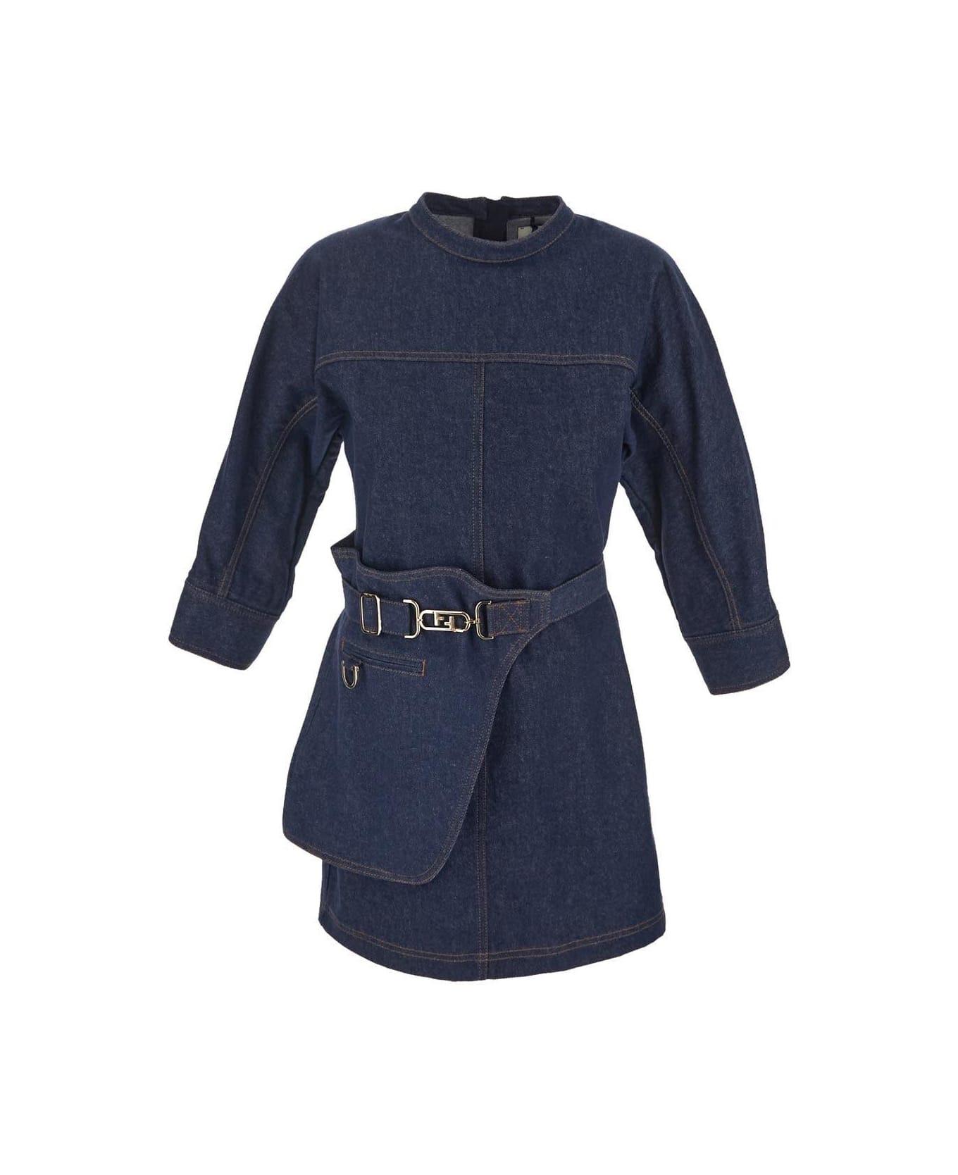 Fendi Dress In Blue Cotton Denim With Elbow-length Sleeves With Drawstring And Shirt Cuffs. The Item Is Featured By A Removable Belt With Side Peplum, Welt Pocket And Metal Ring And Contrasting Tobacco-colored Topstitch. composition: 100% Cotton