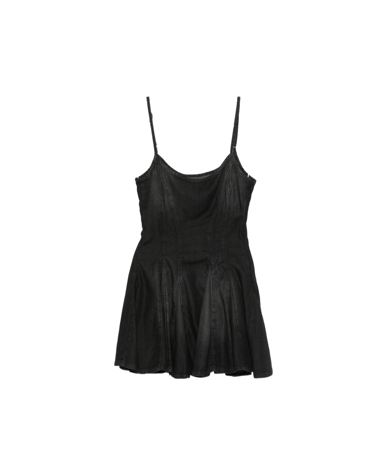 grey panelled design thin shoulder straps seam detail sleeveless flared skirt
