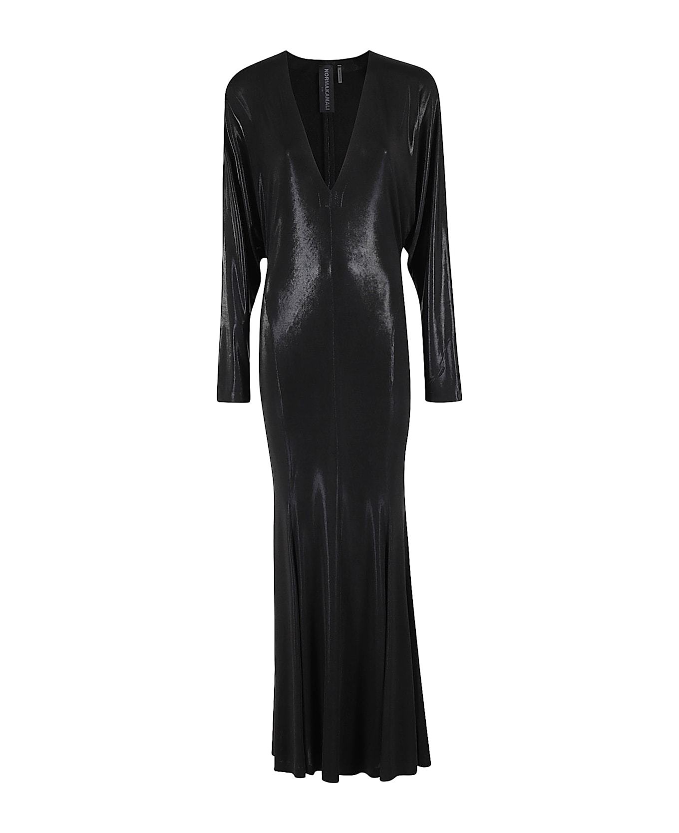 Dolman dress - Norma Kamali - Black color - Fluid fabric with lurex finish - V-neck - Long dolman sleeve - Mermaid design - Fitted fit