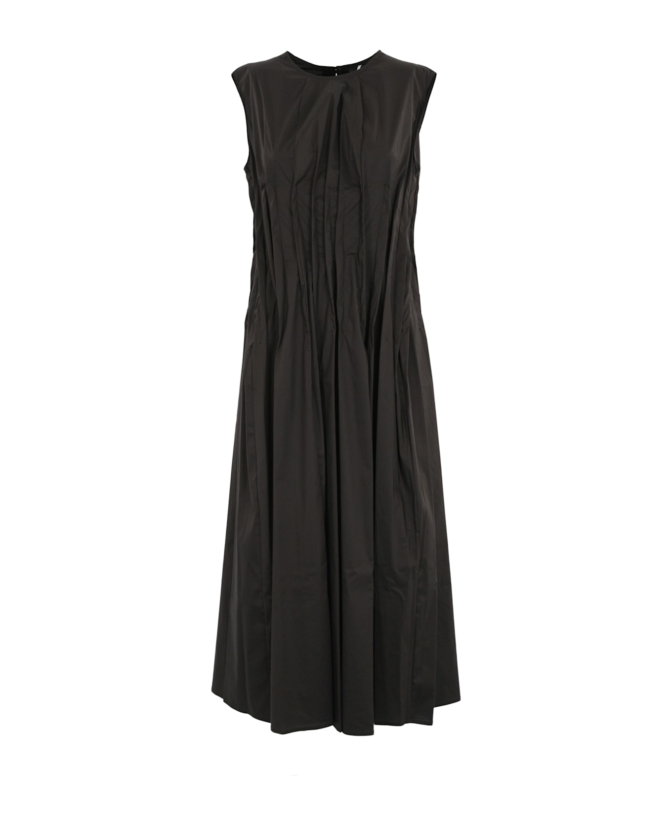 women's midi dress: stretch cotton poplin wrinkle design sleeveless crew neck back button closure flared line regular fit composition: 68% cotton, 28% polyamide, 4% elastane