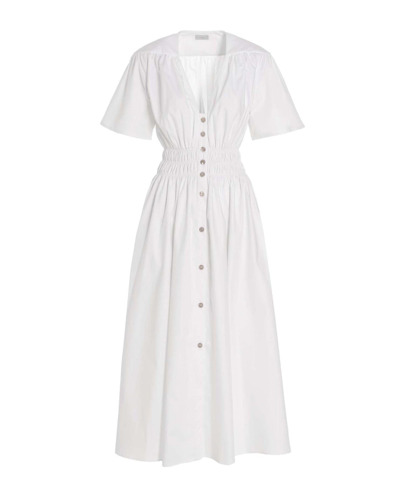 'Dora' cotton dress with a V-neck, gathered, a button closure, short sleeves and side pockets. : 100% organic cotton.